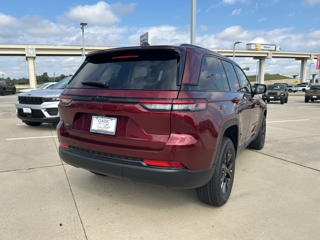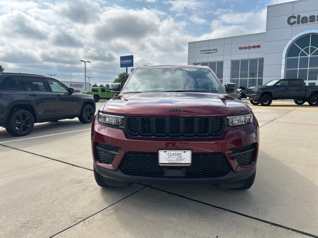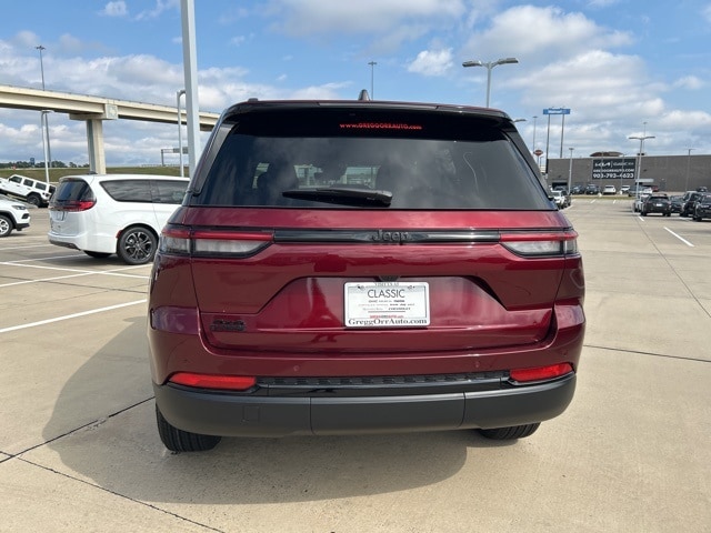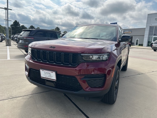 Classic CDJR in Texarkana is proud to offer this charming-looking 2025 Jeep Grand Cherokee in Velvet Red Pearlcoat. This 2025 Jeep Grand Cherokee comes with the following features; Quick Order Package 23M Altitude X (115V Auxiliary Power Outlet, Altitude X, Black Headliner, Capri Leatherette/Suede Seats, Delete Laredo Badge, Gloss Black Exterior Accents, Heated Front Seats, Heated Steering Wheel, Power Liftgate, Power Sunroof, Rain Sensitive Windshield Wipers, Remote Start System, Selectable Tire Fill Alert, Wheels: 18" x 8" Fully Painted Aluminum 1, and Wireless Charging Pad), Trailer Tow Package (180 Amp Alternator, 7 & 4-Pin Wiring Harness, Automatic Headlamp Levelling System, Class IV Receiver Hitch, Heavy-Duty Engine Cooling, Rear Load Levelling Suspension, and Trailer Hitch Zoom), 4WD, 4-Wheel Disc Brakes, 6 Speakers, ABS brakes, Air Conditioning, Alloy wheels, AM/FM radio: SiriusXM, Anti-whiplash front head restraints, Automatic temperature control, Brake assist, Bumpers: body-color, Cloth Seats, Compass, Delay-off headlights, Driver door bin, Driver vanity mirror, Dual front impact airbags, Dual front side impact airbags, Electronic Stability Control, Emergency communication system, Four wheel independent suspension, Front anti-roll bar, Front Bucket Seats, Front Center Armrest w/Storage, Front dual zone A/C, Front License Plate Bracket, Front reading lights, Fully automatic headlights, Heated door mirrors, Illuminated entry, Knee airbag, Low tire pressure warning, Model Year Tracking, Normal Duty Suspension, Occupant sensing airbag, Outside temperature display, Overhead airbag, Overhead console, Panic alarm, ParkView Rear Back-Up Camera, Passenger door bin, Passenger vanity mirror, Power door mirrors, Power driver seat, Power steering, Power windows, Radio data system, Radio: Uconnect 5 w/8.4" Display, Rear anti-roll bar, Rear reading lights, Rear window defroster, Rear window wiper, Remote keyless entry, Security system, Speed control, Speed-Sensitive Wipers, Split folding rear seat, Spoiler, Steering wheel mounted audio controls, Tachometer, Telescoping steering wheel, Tilt steering wheel, Traction control, Trip computer, Variably intermittent wipers, Voltmeter, and Wheels: 17" x 6.5" Fully Painted Aluminum. 4WD.