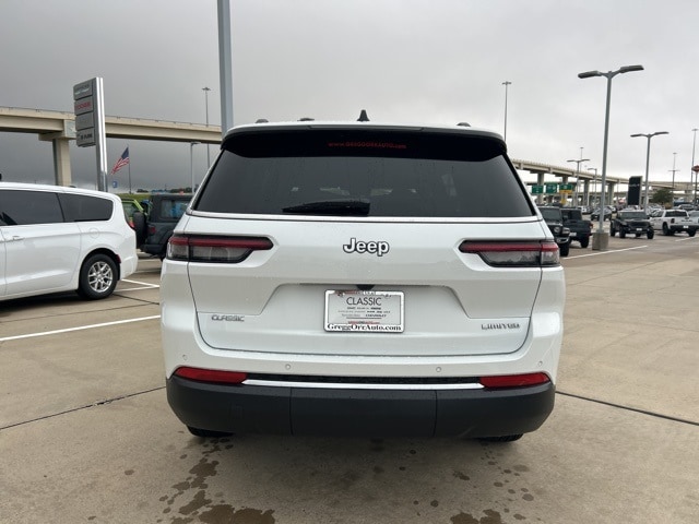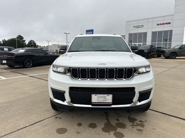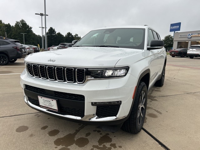 Classic CDJR in Texarkana is proud to offer this good-looking 2025 Jeep Grand Cherokee L in Bright White Clearcoat. This 2025 Jeep Grand Cherokee L comes with the following features; Quick Order Package 23E (DISC), 3.45 Rear Axle Ratio, 3rd row seats: split-bench, 4-Wheel Disc Brakes, 6 Speakers, ABS brakes, Active Noise Control System, Air Conditioning, Alloy wheels, AM/FM radio: SiriusXM with 360L, Anti-whiplash front head restraints, Audio memory, Auto High-beam Headlights, Automatic temperature control, Brake assist, Bumpers: body-color, Capri Leatherette Seats, Compass, Delay-off headlights, Driver door bin, Driver vanity mirror, Dual front impact airbags, Dual front side impact airbags, Electronic Stability Control, Emergency communication system, Four wheel independent suspension, Front anti-roll bar, Front Bucket Seats, Front Center Armrest w/Storage, Front dual zone A/C, Front fog lights, Front License Plate Bracket, Front reading lights, Fully automatic headlights, Garage door transmitter, Heated door mirrors, Heated front seats, Heated rear seats, Heated steering wheel, Illuminated entry, Knee airbag, Low tire pressure warning, Manual Fold Seatbacks, Memory seat, Model Year Tracking, Navigation System, Normal Duty Suspension, Occupant sensing airbag, Outside temperature display, Overhead airbag, Overhead console, Panic alarm, ParkView Rear Back-Up Camera, Passenger door bin, Passenger vanity mirror, Power door mirrors, Power driver seat, Power Liftgate, Power passenger seat, Power steering, Power windows, Radio data system, Radio: Uconnect 5 Nav w/10.1" Display, Rear air conditioning, Rear anti-roll bar, Rear reading lights, Rear window defroster, Rear window wiper, Reclining 3rd row seat, Remote keyless entry, Security system, Speed control, Speed-Sensitive Wipers, Split folding rear seat, Spoiler, Steering wheel mounted audio controls, Tachometer, Telescoping steering wheel, Tilt steering wheel, Traction control, Trip computer, Turn signal indicator mirrors, Variably intermittent wipers, Voltmeter, and Wheels: 18" x 8.0" Polished/Painted Aluminum.