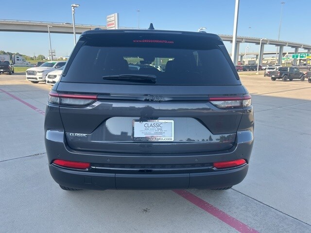 Classic CDJR in Texarkana is proud to offer this outstanding-looking 2025 Jeep Grand Cherokee in Baltic Gray Metallic Clearcoat. This 2025 Jeep Grand Cherokee comes with the following features; Quick Order Package 23M Altitude X (115V Auxiliary Power Outlet, Altitude X, Black Headliner, Capri Leatherette/Suede Seats, Delete Laredo Badge, Gloss Black Exterior Accents, Heated Front Seats, Heated Steering Wheel, Power Liftgate, Power Sunroof, Rain Sensitive Windshield Wipers, Remote Start System, Selectable Tire Fill Alert, Wheels: 18" x 8" Fully Painted Aluminum 1, and Wireless Charging Pad), 4-Wheel Disc Brakes, 6 Speakers, ABS brakes, Air Conditioning, Alloy wheels, AM/FM radio: SiriusXM, Anti-whiplash front head restraints, Automatic temperature control, Brake assist, Bumpers: body-color, Cloth Seats, Compass, Delay-off headlights, Driver door bin, Driver vanity mirror, Dual front impact airbags, Dual front side impact airbags, Electronic Stability Control, Emergency communication system, Four wheel independent suspension, Front anti-roll bar, Front Bucket Seats, Front Center Armrest w/Storage, Front dual zone A/C, Front License Plate Bracket, Front reading lights, Fully automatic headlights, Heated door mirrors, Illuminated entry, Knee airbag, Low tire pressure warning, Model Year Tracking, Normal Duty Suspension, Occupant sensing airbag, Outside temperature display, Overhead airbag, Overhead console, Panic alarm, ParkView Rear Back-Up Camera, Passenger door bin, Passenger vanity mirror, Power door mirrors, Power driver seat, Power steering, Power windows, Radio data system, Radio: Uconnect 5 w/8.4" Display, Rear anti-roll bar, Rear reading lights, Rear window defroster, Rear window wiper, Remote keyless entry, Security system, Speed control, Speed-Sensitive Wipers, Split folding rear seat, Spoiler, Steering wheel mounted audio controls, Tachometer, Telescoping steering wheel, Tilt steering wheel, Traction control, Trip computer, Variably intermittent wipers, Voltmeter, and Wheels: 17" x 6.5" Fully Painted Aluminum.
