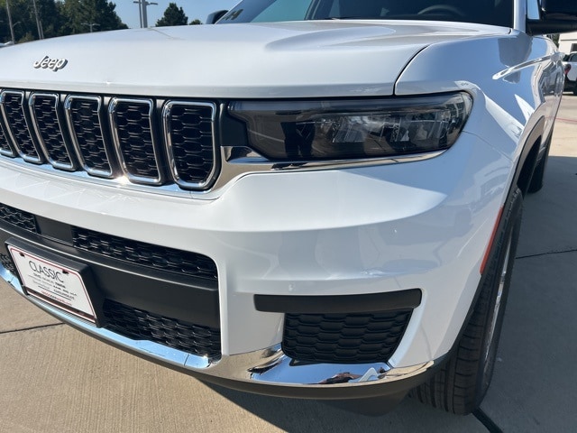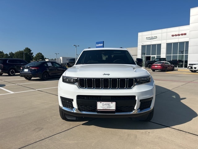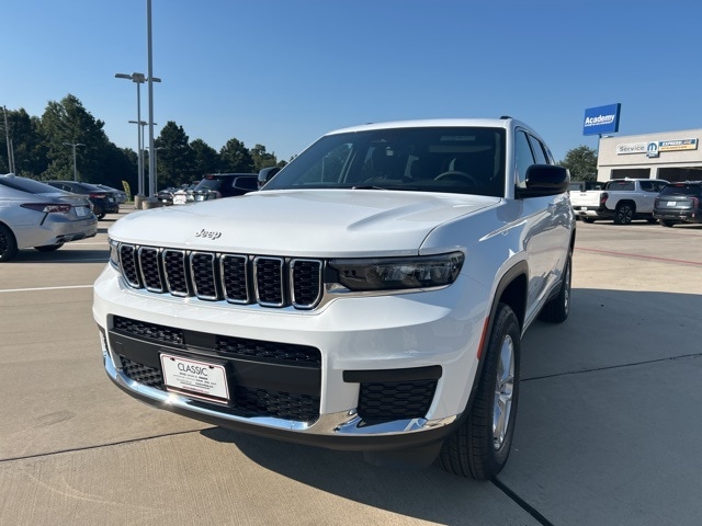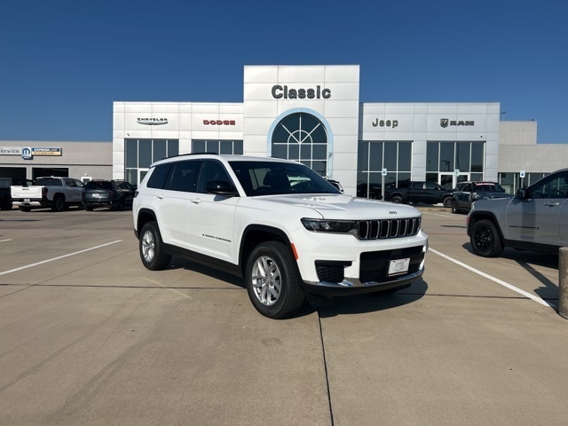 Classic CDJR in Texarkana is proud to offer this good-looking 2025 Jeep Grand Cherokee L in Bright White Clearcoat. This 2025 Jeep Grand Cherokee L comes with the following features; Luxury Tech Group I (115V Auxiliary Power Outlet, 3rd Row Charge-Only USB Ports, Heated Front Seats, Heated Steering Wheel, Power Liftgate, Rain Sensitive Windshield Wipers, Remote Start System, Selectable Tire Fill Alert, and Wireless Charging Pad), Quick Order Package 23D Laredo X (Laredo X and Power Sunroof), 3.45 Rear Axle Ratio, 3rd row seats: split-bench, 4-Wheel Disc Brakes, 6 Speakers, ABS brakes, Air Conditioning, Alloy wheels, AM/FM radio: SiriusXM, Anti-whiplash front head restraints, Automatic temperature control, Brake assist, Bumpers: body-color, Cloth Seats, Compass, Delay-off headlights, Driver door bin, Driver vanity mirror, Dual front impact airbags, Dual front side impact airbags, Electronic Stability Control, Emergency communication system, Four wheel independent suspension, Front anti-roll bar, Front Bucket Seats, Front Center Armrest w/Storage, Front dual zone A/C, Front License Plate Bracket, Front reading lights, Fully automatic headlights, Heated door mirrors, Illuminated entry, Knee airbag, Low tire pressure warning, Manual Fold Seatbacks, Model Year Tracking, Normal Duty Suspension, Occupant sensing airbag, Outside temperature display, Overhead airbag, Overhead console, Panic alarm, ParkView Rear Back-Up Camera, Passenger door bin, Passenger vanity mirror, Power door mirrors, Power driver seat, Power steering, Power windows, Radio data system, Radio: Uconnect 5 w/8.4" Display, Rear air conditioning, Rear anti-roll bar, Rear reading lights, Rear window defroster, Rear window wiper, Reclining 3rd row seat, Remote keyless entry, Security system, Speed control, Speed-Sensitive Wipers, Split folding rear seat, Spoiler, Steering wheel mounted audio controls, Tachometer, Telescoping steering wheel, Tilt steering wheel, Traction control, Trip computer, Variably intermittent wipers, Voltmeter, and Wheels: 18" x 8.0" Fully Painted Aluminum.