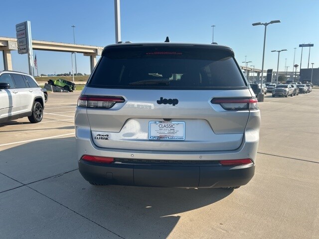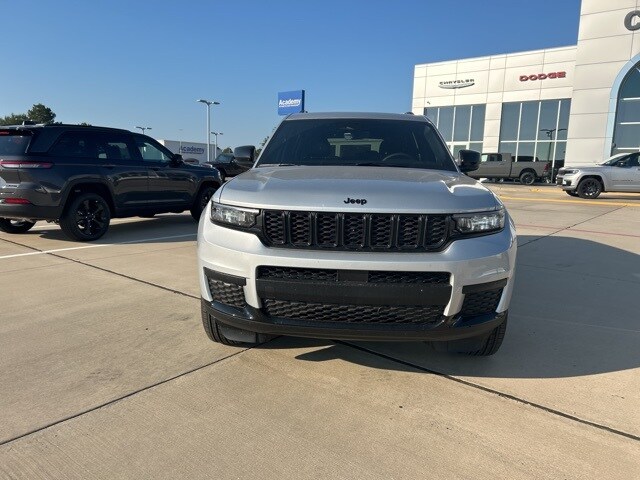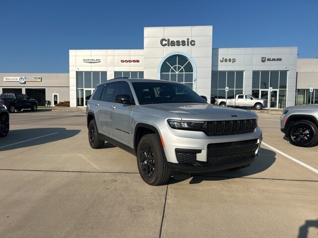 Classic CDJR in Texarkana is proud to offer this gorgeous 2025 Jeep Grand Cherokee L in Silver Zynith. This 2025 Jeep Grand Cherokee L comes with the following features; Quick Order Package 23M Altitude X (115V Auxiliary Power Outlet, 3rd Row Charge-Only USB Ports, Altitude X, Black Headliner, Capri Leatherette/Suede Seats, Delete Laredo Badge, Gloss Black Exterior Accents, Heated Front Seats, Heated Steering Wheel, Power Liftgate, Power Sunroof, Rain Sensitive Windshield Wipers, Remote Start System, Selectable Tire Fill Alert, Wheels: 18" x 8.0" Fully Painted Aluminum 1, and Wireless Charging Pad), 3.45 Rear Axle Ratio, 3rd row seats: split-bench, 4-Wheel Disc Brakes, 6 Speakers, ABS brakes, Air Conditioning, Alloy wheels, AM/FM radio: SiriusXM, Anti-whiplash front head restraints, Automatic temperature control, Brake assist, Bumpers: body-color, Cloth Seats, Compass, Delay-off headlights, Driver door bin, Driver vanity mirror, Dual front impact airbags, Dual front side impact airbags, Electronic Stability Control, Emergency communication system, Four wheel independent suspension, Front anti-roll bar, Front Bucket Seats, Front Center Armrest w/Storage, Front dual zone A/C, Front License Plate Bracket, Front reading lights, Fully automatic headlights, Heated door mirrors, Illuminated entry, Knee airbag, Low tire pressure warning, Manual Fold Seatbacks, Model Year Tracking, Normal Duty Suspension, Occupant sensing airbag, Outside temperature display, Overhead airbag, Overhead console, Panic alarm, ParkView Rear Back-Up Camera, Passenger door bin, Passenger vanity mirror, Power door mirrors, Power driver seat, Power steering, Power windows, Radio data system, Radio: Uconnect 5 w/8.4" Display, Rear air conditioning, Rear anti-roll bar, Rear reading lights, Rear window defroster, Rear window wiper, Reclining 3rd row seat, Remote keyless entry, Security system, Speed control, Speed-Sensitive Wipers, Split folding rear seat, Spoiler, Steering wheel mounted audio controls, Tachometer, Telescoping steering wheel, Tilt steering wheel, Traction control, Trip computer, Variably intermittent wipers, Voltmeter, and Wheels: 18" x 8.0" Fully Painted Aluminum.