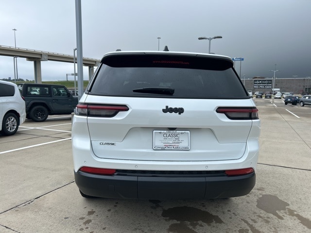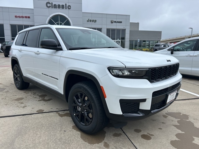 Classic CDJR in Texarkana is proud to offer this fantastic-looking 2025 Jeep Grand Cherokee L in Bright White Clearcoat. This 2025 Jeep Grand Cherokee L comes with the following features; Quick Order Package 23M Altitude X (115V Auxiliary Power Outlet, 3rd Row Charge-Only USB Ports, Altitude X, Black Headliner, Capri Leatherette/Suede Seats, Delete Laredo Badge, Gloss Black Exterior Accents, Heated Front Seats, Heated Steering Wheel, Power Liftgate, Power Sunroof, Rain Sensitive Windshield Wipers, Remote Start System, Selectable Tire Fill Alert, Wheels: 18" x 8.0" Fully Painted Aluminum 1, and Wireless Charging Pad), 3.45 Rear Axle Ratio, 3rd row seats: split-bench, 4-Wheel Disc Brakes, 6 Speakers, ABS brakes, Air Conditioning, Alloy wheels, AM/FM radio: SiriusXM, Anti-whiplash front head restraints, Automatic temperature control, Brake assist, Bumpers: body-color, Cloth Seats, Compass, Delay-off headlights, Driver door bin, Driver vanity mirror, Dual front impact airbags, Dual front side impact airbags, Electronic Stability Control, Emergency communication system, Four wheel independent suspension, Front anti-roll bar, Front Bucket Seats, Front Center Armrest w/Storage, Front dual zone A/C, Front License Plate Bracket, Front reading lights, Fully automatic headlights, Heated door mirrors, Illuminated entry, Knee airbag, Low tire pressure warning, Manual Fold Seatbacks, Model Year Tracking, Normal Duty Suspension, Occupant sensing airbag, Outside temperature display, Overhead airbag, Overhead console, Panic alarm, ParkView Rear Back-Up Camera, Passenger door bin, Passenger vanity mirror, Power door mirrors, Power driver seat, Power steering, Power windows, Radio data system, Radio: Uconnect 5 w/8.4" Display, Rear air conditioning, Rear anti-roll bar, Rear reading lights, Rear window defroster, Rear window wiper, Reclining 3rd row seat, Remote keyless entry, Security system, Speed control, Speed-Sensitive Wipers, Split folding rear seat, Spoiler, Steering wheel mounted audio controls, Tachometer, Telescoping steering wheel, Tilt steering wheel, Traction control, Trip computer, Variably intermittent wipers, Voltmeter, and Wheels: 18" x 8.0" Fully Painted Aluminum.