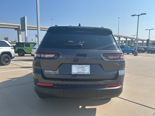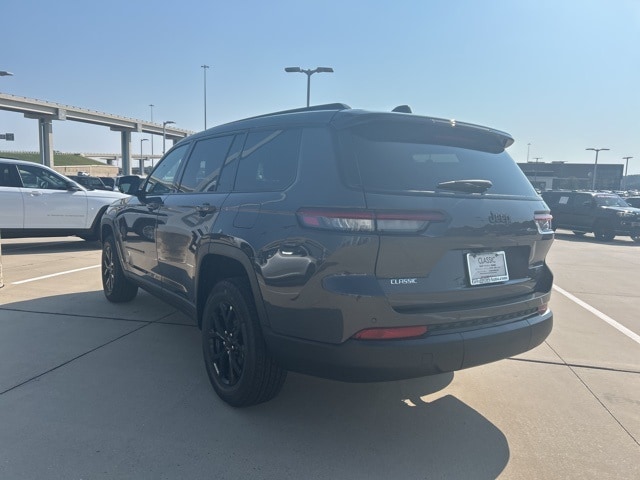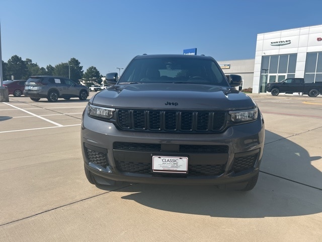 Classic CDJR in Texarkana is proud to offer this beautiful 2025 Jeep Grand Cherokee L in Baltic Gray Metallic Clearcoat. This 2025 Jeep Grand Cherokee L comes with the following features; Quick Order Package 23M Altitude X (115V Auxiliary Power Outlet, 3rd Row Charge-Only USB Ports, Altitude X, Black Headliner, Capri Leatherette/Suede Seats, Delete Laredo Badge, Gloss Black Exterior Accents, Heated Front Seats, Heated Steering Wheel, Power Liftgate, Power Sunroof, Rain Sensitive Windshield Wipers, Remote Start System, Selectable Tire Fill Alert, Wheels: 18" x 8.0" Fully Painted Aluminum 1, and Wireless Charging Pad), 3.45 Rear Axle Ratio, 3rd row seats: split-bench, 4-Wheel Disc Brakes, 6 Speakers, ABS brakes, Air Conditioning, Alloy wheels, AM/FM radio: SiriusXM, Anti-whiplash front head restraints, Automatic temperature control, Brake assist, Bumpers: body-color, Cloth Seats, Compass, Delay-off headlights, Driver door bin, Driver vanity mirror, Dual front impact airbags, Dual front side impact airbags, Electronic Stability Control, Emergency communication system, Four wheel independent suspension, Front anti-roll bar, Front Bucket Seats, Front Center Armrest w/Storage, Front dual zone A/C, Front License Plate Bracket, Front reading lights, Fully automatic headlights, Heated door mirrors, Illuminated entry, Knee airbag, Low tire pressure warning, Manual Fold Seatbacks, Model Year Tracking, Normal Duty Suspension, Occupant sensing airbag, Outside temperature display, Overhead airbag, Overhead console, Panic alarm, ParkView Rear Back-Up Camera, Passenger door bin, Passenger vanity mirror, Power door mirrors, Power driver seat, Power steering, Power windows, Radio data system, Radio: Uconnect 5 w/8.4" Display, Rear air conditioning, Rear anti-roll bar, Rear reading lights, Rear window defroster, Rear window wiper, Reclining 3rd row seat, Remote keyless entry, Security system, Speed control, Speed-Sensitive Wipers, Split folding rear seat, Spoiler, Steering wheel mounted audio controls, Tachometer, Telescoping steering wheel, Tilt steering wheel, Traction control, Trip computer, Variably intermittent wipers, Voltmeter, and Wheels: 18" x 8.0" Fully Painted Aluminum.