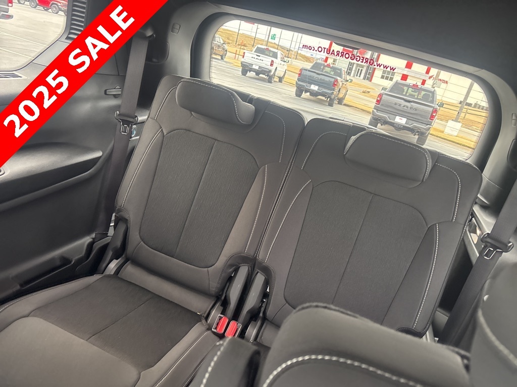 Pricing excludes tax, tag, license fees, dealers $129 doc fee, $1,995 in dealer addendum. See dealer for exact pricing. Some discounts require dealership to arrange financing, price not available with 0% or incentivized rates. See dealer for details. This 2025 Jeep Grand Cherokee L comes equipped with these features Quick Order Package 23D Laredo X (Laredo X and Power Sunroof), 3.45 Rear Axle Ratio, 3rd row seats: split-bench, 4-Wheel Disc Brakes, 6 Speakers, ABS brakes, Air Conditioning, Alloy wheels, AM/FM radio: SiriusXM, Anti-whiplash front head restraints, Automatic temperature control, Brake assist, Bumpers: body-color, Cloth Seats, Compass, Delay-off headlights, Driver door bin, Driver vanity mirror, Dual front impact airbags, Dual front side impact airbags, Electronic Stability Control, Emergency communication system, Four wheel independent suspension, Front anti-roll bar, Front Bucket Seats, Front Center Armrest w/Storage, Front dual zone A/C, Front reading lights, Fully automatic headlights, Heated door mirrors, Illuminated entry, Knee airbag, Low tire pressure warning, Manual Fold Seatbacks, Model Year Tracking, Normal Duty Suspension, Occupant sensing airbag, Outside temperature display, Overhead airbag, Overhead console, Panic alarm, ParkView Rear Back-Up Camera, Passenger door bin, Passenger vanity mirror, Power door mirrors, Power driver seat, Power steering, Power windows, Radio data system, Radio: Uconnect 5 w/8.4" Display, Rear air conditioning, Rear anti-roll bar, Rear reading lights, Rear window defroster, Rear window wiper, Reclining 3rd row seat, Remote keyless entry, Security system, Speed control, Speed-Sensitive Wipers, Split folding rear seat, Spoiler, Steering wheel mounted audio controls, Tachometer, Telescoping steering wheel, Tilt steering wheel, Traction control, Trip computer, Variably intermittent wipers, Voltmeter, and Wheels: 18" x 8.0" Fully Painted Aluminum.