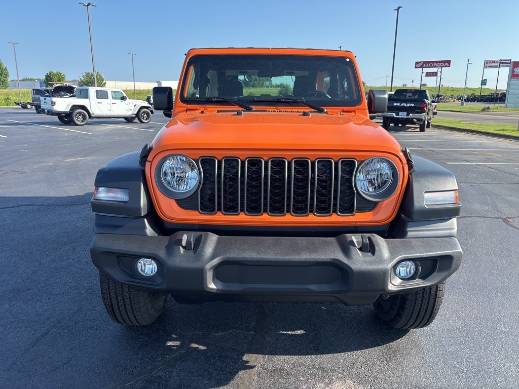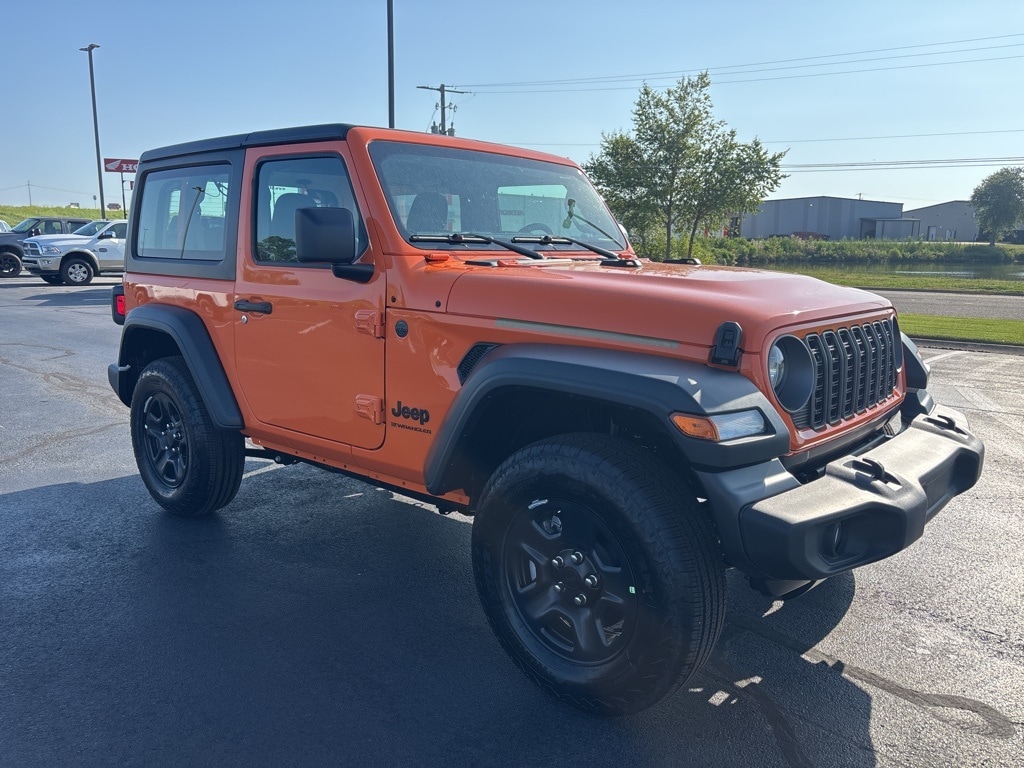 Pricing excludes tax, tag, license fees, dealers $129 doc fee, $1,995 in dealer addendum. See dealer for exact pricing. Some discounts require dealership to arrange financing, price not available with 0% or incentivized rates. See dealer for details. This 2025 Jeep Wrangler comes equipped with these features Quick Order Package 22B Sport, 110 MPH Vehicle Max Speed Calibration, 3.45 Overall Top Gear Ratio, 4-Wheel Disc Brakes, 8 Speakers, ABS brakes, Air Conditioning, AM/FM radio: SiriusXM, Apple CarPlay/Android Auto, Aux Battery, Black 3-Piece Hard Top, Brake assist, Cloth Low-Back Bucket Seats, Compass, Delay-off headlights, Driver door bin, Driver vanity mirror, Dual front impact airbags, Dual front side impact airbags, Electronic Stability Control, Freedom Panel Storage Bag, Front anti-roll bar, Front Bucket Seats, Front Center Armrest w/Storage, Front fog lights, Front reading lights, Illuminated entry, Integrated roll-over protection, Low tire pressure warning, MOPAR All-Weather Floor Mats, Non-Lock Fuel Cap w/o Discriminator, Normal Duty Suspension, Occupant sensing airbag, Outside temperature display, Overhead airbag, Panic alarm, ParkView Rear Back-Up Camera, Passenger door bin, Passenger vanity mirror, Power steering, Power windows, Radio data system, Radio: Uconnect 5 w/12.3" Display, Rear anti-roll bar, Rear reading lights, Rear Window Defroster, Rear Window Wiper/Washer, Remote keyless entry, Speed control, Steering wheel mounted audio controls, Stop-Start Dual Battery System, Tachometer, Telescoping steering wheel, Tilt steering wheel, Traction control, Trip computer, Variably intermittent wipers, and Wheels: 17" x 7.5" Black Steel Styled.