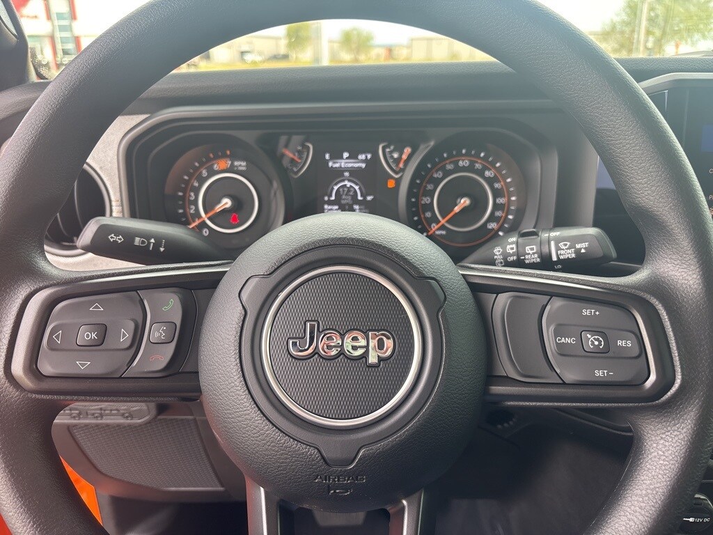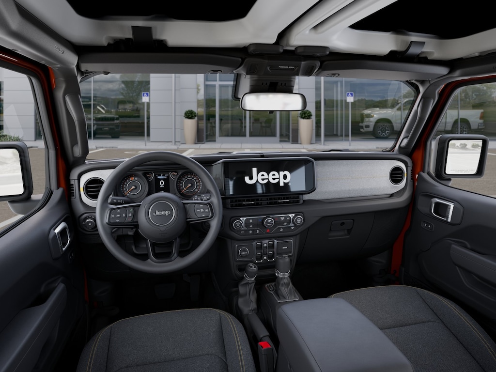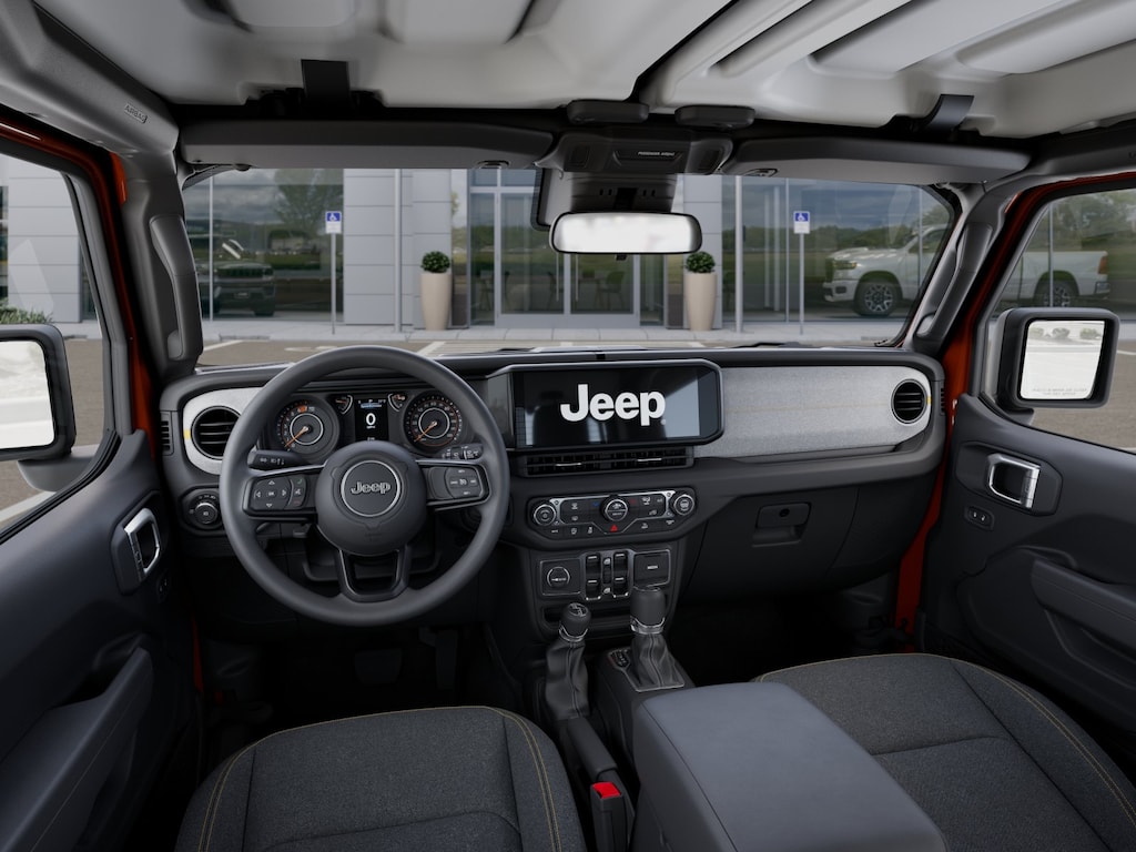 Pricing excludes tax, tag, license fees, dealers $129 doc fee, $1,995 in dealer addendum. See dealer for exact pricing. Some discounts require dealership to arrange financing, price not available with 0% or incentivized rates. See dealer for details. This 2025 Jeep Wrangler comes equipped with these features Quick Order Package 22B Sport, 110 MPH Vehicle Max Speed Calibration, 3.45 Overall Top Gear Ratio, 4-Wheel Disc Brakes, 8 Speakers, ABS brakes, Air Conditioning, AM/FM radio: SiriusXM, Apple CarPlay/Android Auto, Aux Battery, Black 3-Piece Hard Top, Brake assist, Cloth Low-Back Bucket Seats, Compass, Delay-off headlights, Driver door bin, Driver vanity mirror, Dual front impact airbags, Dual front side impact airbags, Electronic Stability Control, Freedom Panel Storage Bag, Front anti-roll bar, Front Bucket Seats, Front Center Armrest w/Storage, Front fog lights, Front reading lights, Illuminated entry, Integrated roll-over protection, Low tire pressure warning, Non-Lock Fuel Cap w/o Discriminator, Normal Duty Suspension, Occupant sensing airbag, Outside temperature display, Overhead airbag, Panic alarm, ParkView Rear Back-Up Camera, Passenger door bin, Passenger vanity mirror, Power steering, Power windows, Radio data system, Radio: Uconnect 5 w/12.3" Display, Rear anti-roll bar, Rear reading lights, Rear Window Defroster, Rear Window Wiper/Washer, Remote keyless entry, Speed control, Split folding rear seat, Steering wheel mounted audio controls, Stop-Start Dual Battery System, Tachometer, Telescoping steering wheel, Tilt steering wheel, Traction control, Trip computer, Variably intermittent wipers, and Wheels: 17" x 7.5" Black Steel Styled.