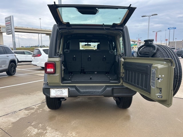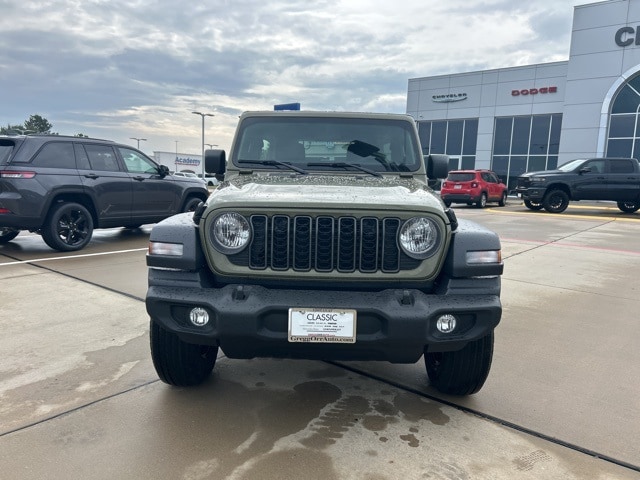 Classic CDJR in Texarkana is proud to offer this beautiful-looking and fun 2025 Jeep Wrangler in 41. This 2025 Jeep Wrangler comes with the following features; Quick Order Package 22B Sport, 110 MPH Vehicle Max Speed Calibration, 3.45 Overall Top Gear Ratio, 4-Wheel Disc Brakes, 8 Speakers, ABS brakes, Air Conditioning, AM/FM radio: SiriusXM, Apple CarPlay/Android Auto, Aux Battery, Black 3-Piece Hard Top, Brake assist, Cloth Low-Back Bucket Seats, Compass, Delay-off headlights, Driver door bin, Driver vanity mirror, Dual front impact airbags, Dual front side impact airbags, Electronic Stability Control, Freedom Panel Storage Bag, Front anti-roll bar, Front Bucket Seats, Front Center Armrest w/Storage, Front fog lights, Front reading lights, Illuminated entry, Integrated roll-over protection, Low tire pressure warning, MOPAR All-Weather Floor Mats, Non-Lock Fuel Cap w/o Discriminator, Normal Duty Suspension, Occupant sensing airbag, Outside temperature display, Overhead airbag, Panic alarm, ParkView Rear Back-Up Camera, Passenger door bin, Passenger vanity mirror, Power steering, Power windows, Radio data system, Radio: Uconnect 5 w/12.3" Display, Rear anti-roll bar, Rear reading lights, Rear Window Defroster, Rear Window Wiper/Washer, Remote keyless entry, Speed control, Split folding rear seat, Steering wheel mounted audio controls, Stop-Start Dual Battery System, Tachometer, Telescoping steering wheel, Tilt steering wheel, Traction control, Trip computer, Variably intermittent wipers, and Wheels: 17" x 7.5" Black Steel Styled.