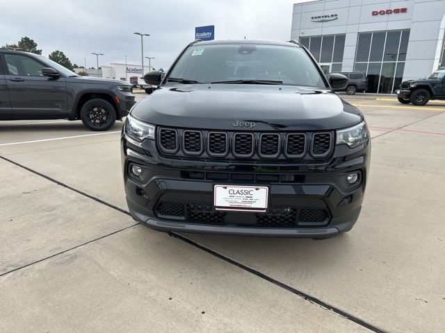 Classic CDJR in Texarkana is proud to offer this handsome 2026 Jeep Compass in Diamond. This 2026 Jeep Compass comes with the following features; Quick Order Package 29N Altitude (10.1" Touchscreen Display, Altitude Special Edition, Black Day Light Opening Moldings, Gloss Black Surround/Neutral Gray Rings, Neutral Gray Exterior Badging, Piano Black Interior Accents, Sliding Sun Visors with Illuminated Mirrors, and Wheels: 18" x 7" Gloss Black Painted Aluminum), 4WD, 17" x 7" Aluminum Wheels, 3.73 Final Drive Ratio, 4-Wheel Disc Brakes, 4G LTE Wi-Fi Hot Spot, 6 Speakers, ABS brakes, Air Conditioning, AM/FM radio: SiriusXM, Auto High-beam Headlights, Automatic temperature control, Bluetooth Handsfree Phone and Audio, Brake assist, Bumpers: body-color, Compass, Delay-off headlights, Driver door bin, Driver vanity mirror, Dual front impact airbags, Dual front side impact airbags, Electronic Stability Control, Emergency communication system: SiriusXM Guardian, Four wheel independent suspension, Front anti-roll bar, Front Bucket Seats, Front Center Armrest w/Storage, Front fog lights, Front License Plate Bracket, Front reading lights, Fully automatic headlights, Global Telematics Box Module, Heated door mirrors, Heated front seats, Heated steering wheel, Illuminated entry, Knee airbag, Leather Shift Knob, Leather steering wheel, Low tire pressure warning, Occupant sensing airbag, Outside temperature display, Overhead airbag, Overhead console, Panic alarm, ParkView Rear Back-Up Camera, Passenger door bin, Passenger vanity mirror, Power door mirrors, Power steering, Power windows, Premium audio system: UConnect 5, Premium Cloth/Vinyl Bucket Seats, Radio: Uconnect 5 with 8.4" Display, Rear anti-roll bar, Rear seat center armrest, Rear window defroster, Rear window wiper, Remote keyless entry, Security system, SiriusXM Satellite Radio, Speed control, Split folding rear seat, Spoiler, Steering wheel mounted audio controls, Tachometer, Telescoping steering wheel, Tilt steering wheel, Traction control, Trip computer, and Variably intermittent wipers. 4WD.