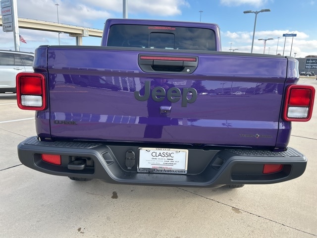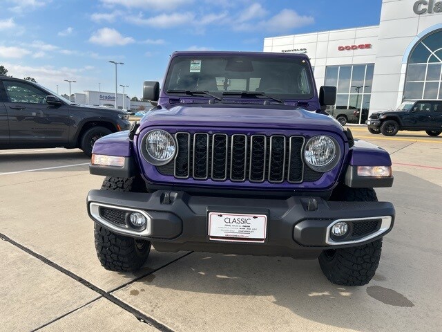 Classic CDJR in Texarkana is proud to offer this fantastic 2026 Jeep Gladiator in Reign. This 2026 Jeep Gladiator comes with the following features; Convenience Group (Air Conditioning with Auto Temp Control, Cluster 7.0" TFT Color Display, Corning Gorilla Glass, Daytime Running Lamp System, Emergency/Assistance Call, Front Door Locks 2-Door Passive Entry, Heated Front Seats, Heated Steering Wheel, Remote Start System, and Universal Garage Door Opener), Quick Order Package 24J Texas Trail (2-Piece Body Color Fender Flares, Advanced Brake Assist, Automatic Headlamps, Body Color 3-Piece Hard Top, Central ADAS Decision Module (CADM), Deep Tint Sunscreen Windows, Freedom Panel Storage Bag, Full Length Floor Console Premium Armrest, Full Speed Forward Collision Warning Plus, Hard Seat Back, Leather Wrapped Park Brake Handle, Leather Wrapped Shift Knob, Power 4-Way Driver Lumbar Adjust, Power 4-Way Passenger Lumbar Adjust, Power Adjust 8-Way Driver Seat, Power Adjust 8-Way Front Passenger Seat, Power Heated Mirrors, Premium Door Trim Panel, Premium McKinley Trimmed Seats, Premium Wrapped Steering Wheel, Rear Armrest with Cupholder Seat, Rear Sliding Window, Rear Window Defroster, Security Alarm, Side Steps, Sun Visors with Illuminated Vanity Mirrors, Texas Trail, Texas Trail Tailgate and Hood Decals, Wheels: 17" x 7.5" Painted Black, and Willys Suspension), 110 Mph Vehicle Max Speed Calibration, 12.3" Touchscreen Display, 3.73 Rear Axle Ratio, 4-Wheel Disc Brakes, 4G LTE Wi-Fi Hot Spot, 8 Speakers, ABS brakes, Air Conditioning, Alexa Built-in, AM/FM radio: SiriusXM with 360L, Apple CarPlay, Apple CarPlay/Android Auto, Brake assist, Compass, Connectivity - US/Canada, Delay-off headlights, Driver door bin, Driver vanity mirror, Dual front impact airbags, Dual front side impact airbags, Electronic Stability Control, Front anti-roll bar, Front Bucket Seats, Front Center Armrest w/Storage, Front fog lights, Front License Plate Bracket, Front reading lights, Google Android Auto, Illuminated entry, Integrated roll-over protection, Low tire pressure warning, MOPAR All-Weather Slush Mats, MOPAR Spray in Bedliner, Normal Duty Suspension, Occupant sensing airbag, Outside temperature display, Overhead airbag, Panic alarm, ParkView Rear Back-Up Camera, Passenger door bin, Passenger vanity mirror, Power steering, Power windows, Radio data system, Radio: Uconnect 5 with 12.3" Display, Rear anti-roll bar, Rear reading lights, Remote keyless entry, Speed control, Split folding rear seat, Steering wheel mounted audio controls, Tachometer, Telescoping steering wheel, Tilt steering wheel, Traction control, Trip computer, USB Host Flip, Variably intermittent wipers, Voltmeter, and Wheels: 17" x 7.5" Black Steel Styled.