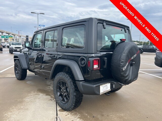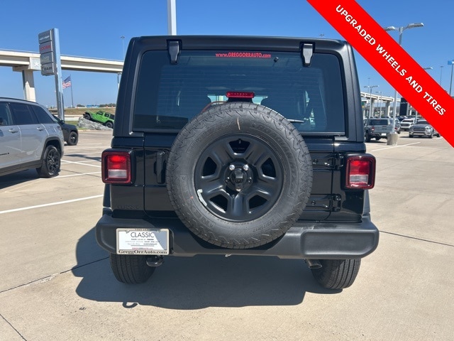 Classic CDJR in Texarkana is proud to offer this good-looking and fun 2026 Jeep Wrangler in Black Clearcoat. This 2026 Jeep Wrangler comes with the following features; Quick Order Package 22B Sport, 3.45 Overall Top Gear Ratio, 4-Wheel Disc Brakes, 8 Speakers, ABS brakes, Air Conditioning, AM/FM radio: SiriusXM with 360L, Apple CarPlay/Android Auto, Aux Battery, Black 3-Piece Hard Top, Brake assist, Cloth Low-Back Bucket Seats, Compass, Delay-off headlights, Driver door bin, Driver vanity mirror, Dual front impact airbags, Dual front side impact airbags, Electronic Stability Control, Freedom Panel Storage Bag, Front anti-roll bar, Front Bucket Seats, Front Center Armrest w/Storage, Front fog lights, Front reading lights, Illuminated entry, Integrated roll-over protection, Low tire pressure warning, MOPAR All-Weather Floor Mats, Non-Lock Fuel Cap w/o Discriminator, Normal Duty Suspension, Occupant sensing airbag, Outside temperature display, Overhead airbag, Panic alarm, ParkView Rear Back-Up Camera, Passenger door bin, Passenger vanity mirror, Power steering, Power windows, Radio data system, Radio: Uconnect 5 w/12.3" Display, Rear anti-roll bar, Rear reading lights, Rear Window Defroster, Rear Window Wiper/Washer, Remote keyless entry, Speed control, Split folding rear seat, Steering wheel mounted audio controls, Stop-Start Dual Battery System, Tachometer, Telescoping steering wheel, Tilt steering wheel, Traction control, Trip computer, Variably intermittent wipers, and Wheels: 17" x 7.5" Black Steel Styled.
