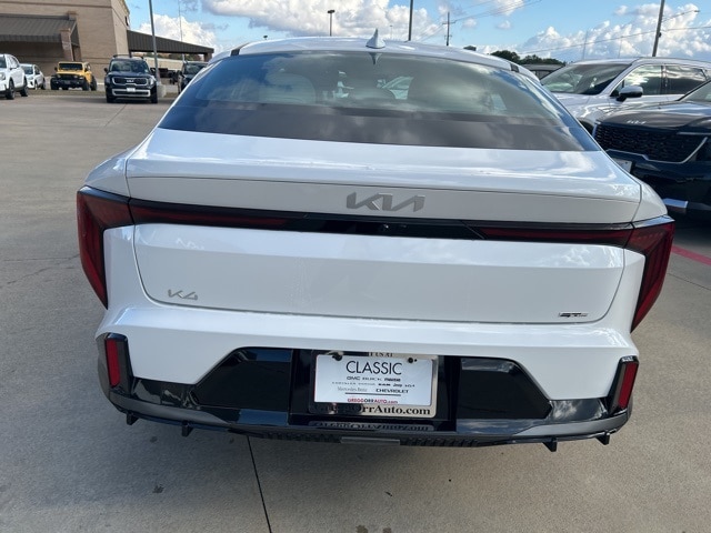 The 2025 Kia K4 comes with the following features; GT-Line Premium Package (Acoustic Windshield, Driver's Seat & Outer-Mirrors Memory, harman/kardon Premium Audio, SynTex Seat Trim, and Ventilated Front Seats), GT-Line Sunroof Package (Wide Power Sunroof w/Power Sunshade), 4-Wheel Disc Brakes, 6 Speakers, ABS brakes, Air Conditioning, Alloy wheels, AM/FM radio: SiriusXM, Apple CarPlay & Android Auto, Auto High-beam Headlights, Automatic temperature control, Brake assist, Bumpers: body-color, Cloth/SynTex Seat Trim, Delay-off headlights, Driver door bin, Driver vanity mirror, Dual front impact airbags, Dual front side impact airbags, Electronic Stability Control, Four wheel independent suspension, Front anti-roll bar, Front Bucket Seats, Front Center Armrest, Front dual zone A/C, Front Heated Bucket Seats, Front reading lights, Fully automatic headlights, Heated door mirrors, Heated front seats, Illuminated entry, Low tire pressure warning, Navigation System, Occupant sensing airbag, Outside temperature display, Overhead airbag, Overhead console, Panic alarm, Passenger door bin, Passenger vanity mirror, Power door mirrors, Power driver seat, Power steering, Power windows, Radio data system, Radio: 12.3" Touchscreen Audio Display, Rear anti-roll bar, Rear seat center armrest, Rear side impact airbag, Rear window defroster, Remote keyless entry, Security system, Speed control, Split folding rear seat, Sport steering wheel, Steering wheel mounted audio controls, Tachometer, Telescoping steering wheel, Tilt steering wheel, Traction control, Trip computer, Turn signal indicator mirrors, Variably intermittent wipers, and Wheels: 18" x 8.0J Black Machined Alloy.