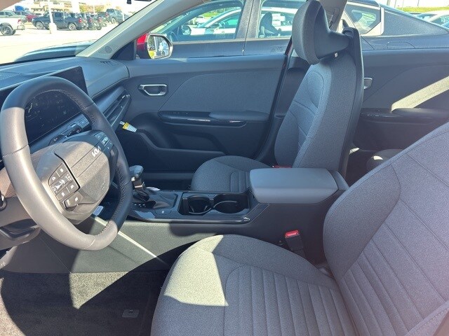 The 2025 Kia K4 comes with the following features; 4-Wheel Disc Brakes, 6 Speakers, ABS brakes, Air Conditioning, Alloy wheels, AM/FM radio: SiriusXM, Apple CarPlay & Android Auto, Auto High-beam Headlights, Automatic temperature control, Brake assist, Bumpers: body-color, Delay-off headlights, Driver door bin, Driver vanity mirror, Dual front impact airbags, Dual front side impact airbags, Electronic Stability Control, Front anti-roll bar, Front Bucket Seats, Front Center Armrest, Front dual zone A/C, Front reading lights, Front wheel independent suspension, Fully automatic headlights, Heated door mirrors, Illuminated entry, Low tire pressure warning, Occupant sensing airbag, Outside temperature display, Overhead airbag, Overhead console, Panic alarm, Passenger door bin, Passenger vanity mirror, Power door mirrors, Power steering, Power windows, Radio data system, Radio: 12.3" Touchscreen Audio Display, Rear side impact airbag, Rear window defroster, Remote keyless entry, Security system, Speed control, Split folding rear seat, Steering wheel mounted audio controls, Tachometer, Telescoping steering wheel, Tilt steering wheel, Traction control, Trip computer, Upgraded Cloth Seat Trim, Variably intermittent wipers, and Wheels: 17" x 7.0J Black Machined Alloy.