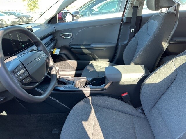 The 2025 Kia K4 comes with the following features; 4-Wheel Disc Brakes, 6 Speakers, ABS brakes, Air Conditioning, Alloy wheels, AM/FM radio: SiriusXM, Apple CarPlay & Android Auto, Auto High-beam Headlights, Brake assist, Bumpers: body-color, Cloth Seat Trim, Delay-off headlights, Driver door bin, Driver vanity mirror, Dual front impact airbags, Dual front side impact airbags, Electronic Stability Control, Front anti-roll bar, Front Bucket Seats, Front Center Armrest, Front reading lights, Front wheel independent suspension, Fully automatic headlights, Heated door mirrors, Illuminated entry, Low tire pressure warning, Occupant sensing airbag, Outside temperature display, Overhead airbag, Overhead console, Panic alarm, Passenger door bin, Passenger vanity mirror, Power door mirrors, Power steering, Power windows, Radio data system, Radio: 12.3" Touchscreen Audio Display, Rear side impact airbag, Rear window defroster, Remote keyless entry, Security system, Speed control, Split folding rear seat, Steering wheel mounted audio controls, Tachometer, Telescoping steering wheel, Tilt steering wheel, Traction control, Trip computer, Variably intermittent wipers, and Wheels: 16" x 6.5J Dark Gray Alloy.