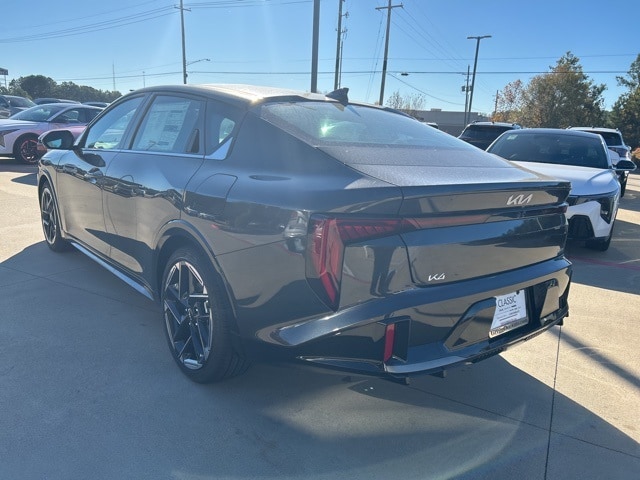 The 2025 Kia K4 comes with the following features; GT-Line Premium Package (Acoustic Windshield, Driver's Seat & Outer-Mirrors Memory, harman/kardon Premium Audio, SynTex Seat Trim, and Ventilated Front Seats), GT-Line Sunroof Package (Wide Power Sunroof w/Power Sunshade), 4-Wheel Disc Brakes, 6 Speakers, ABS brakes, Air Conditioning, Alloy wheels, AM/FM radio: SiriusXM, Apple CarPlay & Android Auto, Auto High-beam Headlights, Automatic temperature control, Brake assist, Bumpers: body-color, Cloth/SynTex Seat Trim, Delay-off headlights, Driver door bin, Driver vanity mirror, Dual front impact airbags, Dual front side impact airbags, Electronic Stability Control, Four wheel independent suspension, Front anti-roll bar, Front Bucket Seats, Front Center Armrest, Front dual zone A/C, Front Heated Bucket Seats, Front reading lights, Fully automatic headlights, Heated door mirrors, Heated front seats, Illuminated entry, Low tire pressure warning, Navigation System, Occupant sensing airbag, Outside temperature display, Overhead airbag, Overhead console, Panic alarm, Passenger door bin, Passenger vanity mirror, Power door mirrors, Power driver seat, Power steering, Power windows, Radio data system, Radio: 12.3" Touchscreen Audio Display, Rear anti-roll bar, Rear seat center armrest, Rear side impact airbag, Rear window defroster, Remote keyless entry, Security system, Speed control, Split folding rear seat, Sport steering wheel, Steering wheel mounted audio controls, Tachometer, Telescoping steering wheel, Tilt steering wheel, Traction control, Trip computer, Turn signal indicator mirrors, Variably intermittent wipers, and Wheels: 18" x 8.0J Black Machined Alloy.