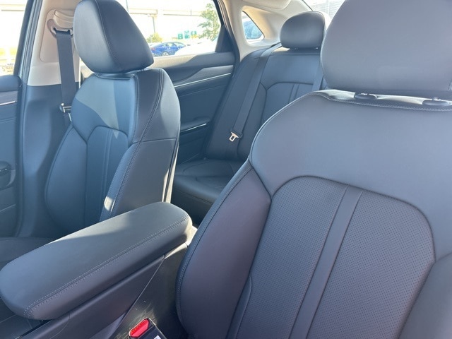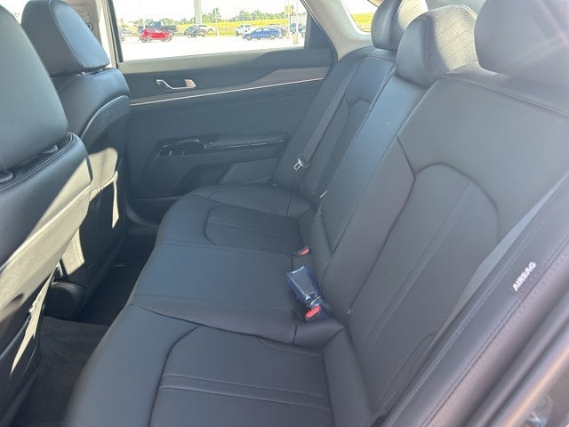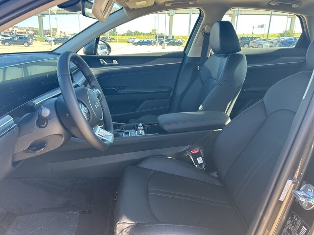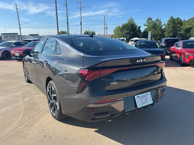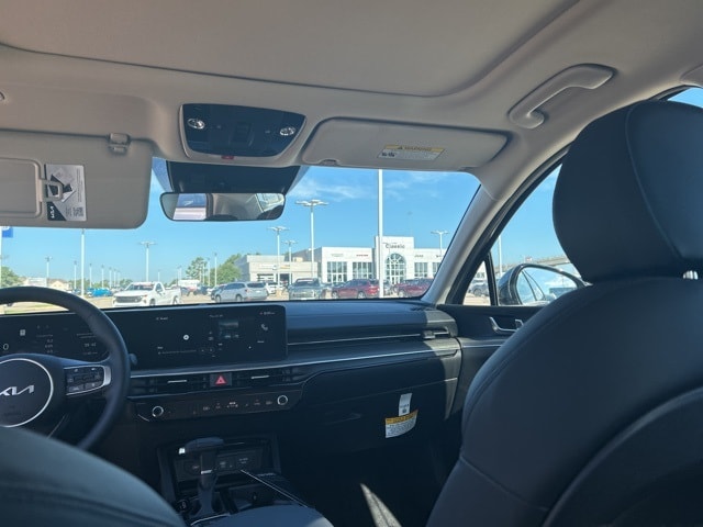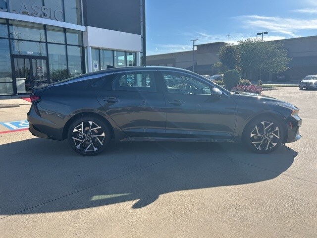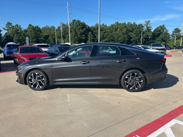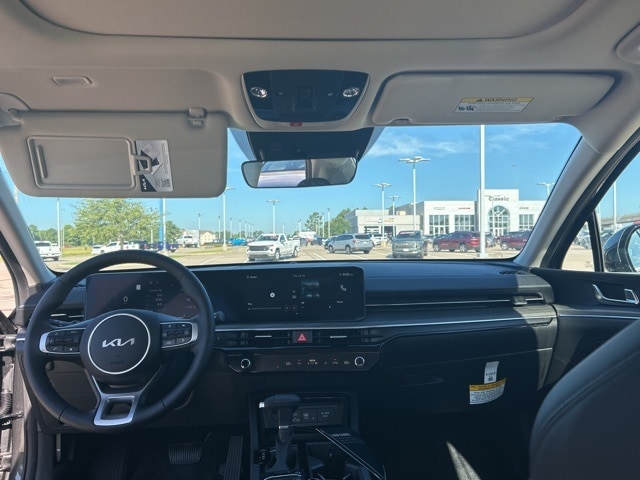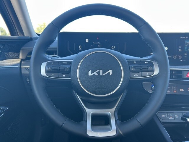 The 2025 Kia K5 comes with the following features; 12 Speakers, 4-Wheel Disc Brakes, ABS brakes, Air Conditioning, Alloy wheels, AM/FM radio: SiriusXM, Auto High-beam Headlights, Automatic temperature control, Brake assist, Bumpers: body-color, Carpeted Floor Mats, Delay-off headlights, Driver door bin, Driver vanity mirror, Dual front impact airbags, Dual front side impact airbags, Electronic Stability Control, Emergency communication system: Kia Connect (includes 1 year free trial), Four wheel independent suspension, Front anti-roll bar, Front Bucket Seats, Front Center Armrest, Front dual zone A/C, Front reading lights, Fully automatic headlights, Heated & Ventilated Front Bucket Seats, Heated door mirrors, Heated front seats, Heated steering wheel, Illuminated entry, Knee airbag, Leather Shift Knob, Leather steering wheel, Low tire pressure warning, Memory seat, Navigation System, Occupant sensing airbag, Outside temperature display, Overhead airbag, Overhead console, Panic alarm, Passenger door bin, Passenger vanity mirror, Power door mirrors, Power driver seat, Power moonroof, Power passenger seat, Power steering, Power windows, Radio data system, Radio: AM/FM Audio System, Rear anti-roll bar, Rear reading lights, Rear seat center armrest, Rear side impact airbag, Rear window defroster, Remote keyless entry, Security system, Speed control, Speed-sensing steering, Split folding rear seat, Steering wheel mounted audio controls, SynTex Seat Trim, Tachometer, Telescoping steering wheel, Tilt steering wheel, Traction control, Trip computer, Turn signal indicator mirrors, Variably intermittent wipers, Ventilated front seats, and Wheels: 18" x 7.5J Gloss Black Machined Finish Alloy.