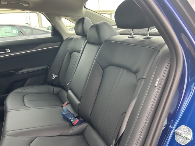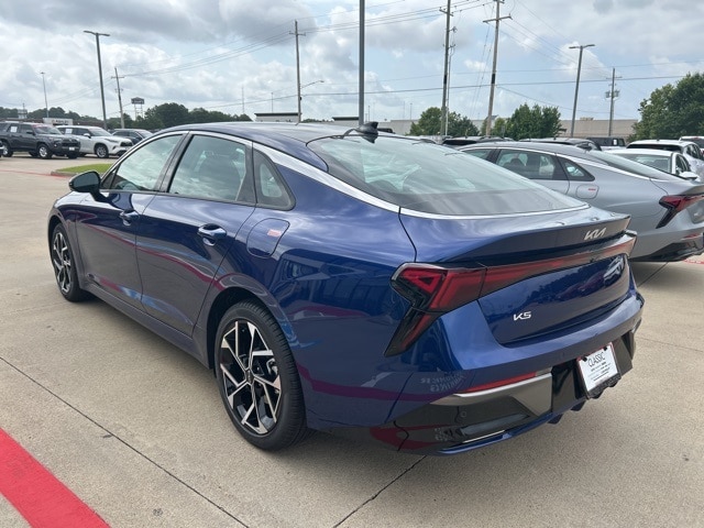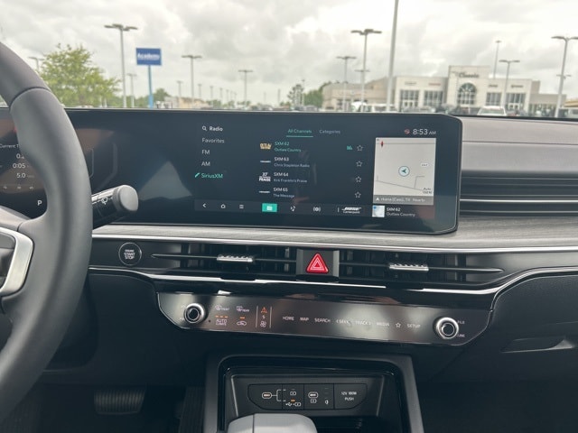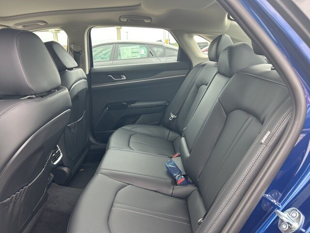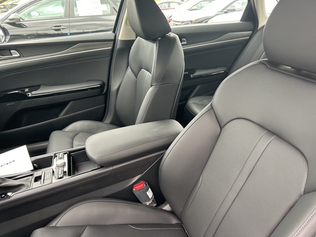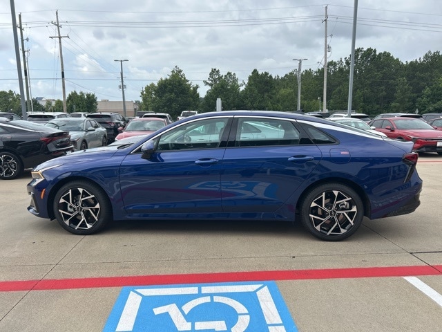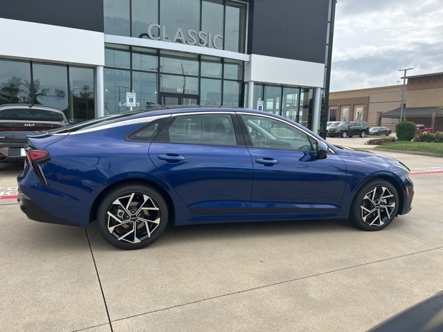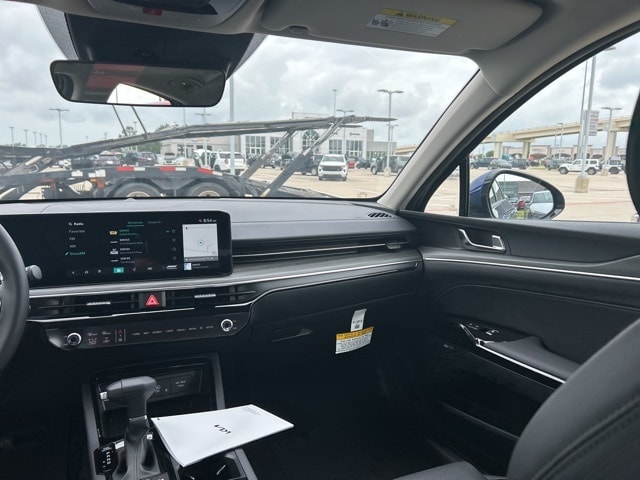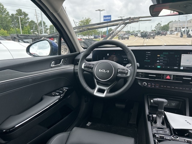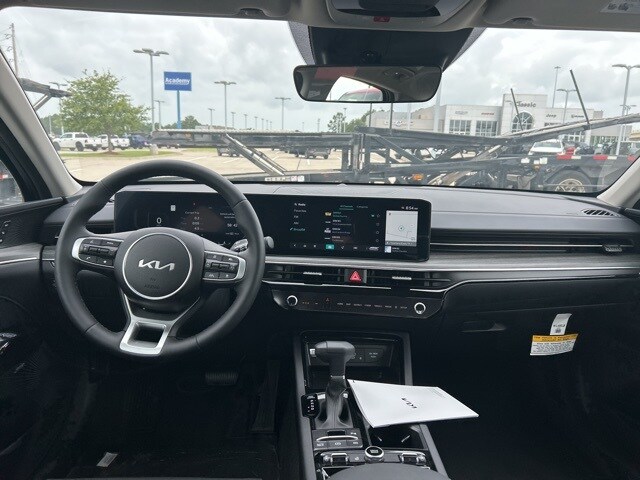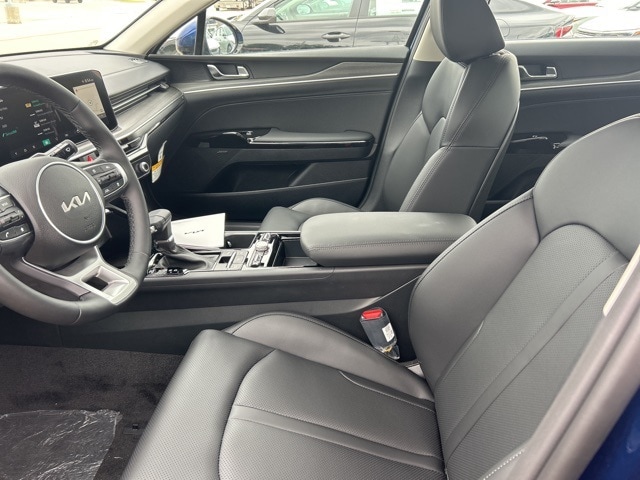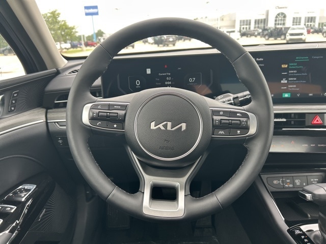 The 2025 Kia K5 comes with the following features; 12 Speakers, 4-Wheel Disc Brakes, ABS brakes, Air Conditioning, Alloy wheels, AM/FM radio: SiriusXM, Auto High-beam Headlights, Automatic temperature control, Brake assist, Bumpers: body-color, Carpeted Floor Mats, Delay-off headlights, Driver door bin, Driver vanity mirror, Dual front impact airbags, Dual front side impact airbags, Electronic Stability Control, Emergency communication system: Kia Connect (includes 1 year free trial), Four wheel independent suspension, Front anti-roll bar, Front Bucket Seats, Front Center Armrest, Front dual zone A/C, Front reading lights, Fully automatic headlights, Heated & Ventilated Front Bucket Seats, Heated door mirrors, Heated front seats, Heated steering wheel, Illuminated entry, Knee airbag, Leather Shift Knob, Leather steering wheel, Low tire pressure warning, Memory seat, Navigation System, Occupant sensing airbag, Outside temperature display, Overhead airbag, Overhead console, Panic alarm, Passenger door bin, Passenger vanity mirror, Power door mirrors, Power driver seat, Power moonroof, Power passenger seat, Power steering, Power windows, Radio data system, Radio: AM/FM Audio System, Rear anti-roll bar, Rear reading lights, Rear seat center armrest, Rear side impact airbag, Rear window defroster, Remote keyless entry, Security system, Speed control, Speed-sensing steering, Split folding rear seat, Steering wheel mounted audio controls, SynTex Seat Trim, Tachometer, Telescoping steering wheel, Tilt steering wheel, Traction control, Trip computer, Turn signal indicator mirrors, Variably intermittent wipers, Ventilated front seats, and Wheels: 18" x 7.5J Gloss Black Machined Finish Alloy.