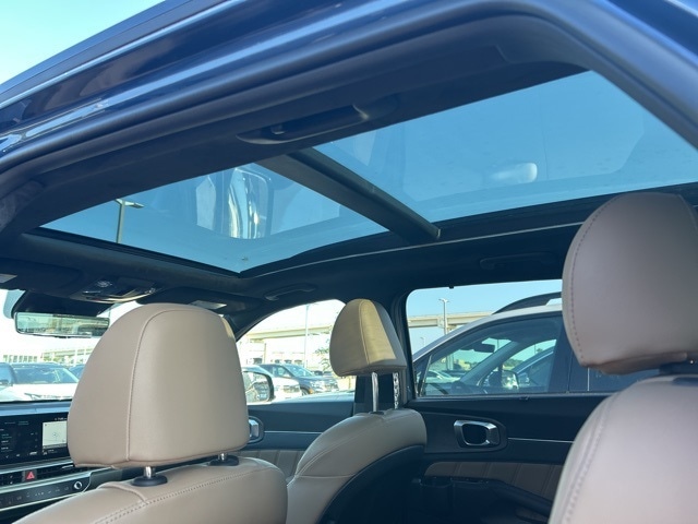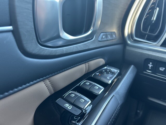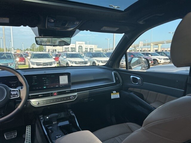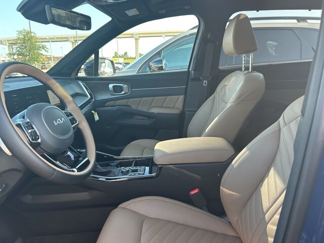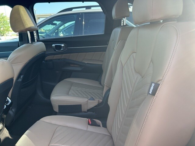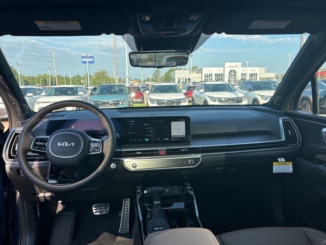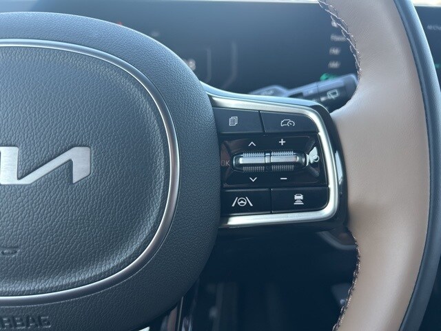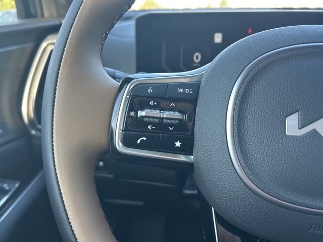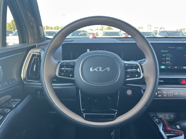 The 2025 Kia Sorento comes with the following features; Olive Brown Leather Package, AWD, 12 Speakers, 3rd row seats: split-bench, 4-Wheel Disc Brakes, ABS brakes, Air Conditioning, Alloy wheels, AM/FM radio: SiriusXM, Apple CarPlay & Android Auto, Auto High-beam Headlights, Auto-dimming Rear-View mirror, Automatic temperature control, Brake assist, Bumpers: body-color, Cargo Tray, Carpeted Floor Mats, Delay-off headlights, Driver door bin, Driver vanity mirror, Dual front impact airbags, Dual front side impact airbags, Electronic Stability Control, Emergency communication system: 911 Connect, Exterior Parking Camera Rear, Four wheel independent suspension, Front anti-roll bar, Front Bucket Seats, Front Center Armrest, Front dual zone A/C, Front fog lights, Front reading lights, Fully automatic headlights, Garage door transmitter: HomeLink, Heated & Ventilated Front Bucket Seats, Heated door mirrors, Heated front seats, Heated rear seats, Heated steering wheel, Illuminated entry, Knee airbag, Leather Shift Knob, Leather steering wheel, Low tire pressure warning, Memory seat, Navigation System, Occupant sensing airbag, Outside temperature display, Overhead airbag, Overhead console, Panic alarm, Passenger door bin, Passenger vanity mirror, Perforated Genuine Leather Seat Trim, Power door mirrors, Power driver seat, Power Liftgate, Power moonroof, Power passenger seat, Power steering, Power windows, Radio data system, Radio: AM/FM Bose Premium Audio System, Rain sensing wipers, Rear anti-roll bar, Rear reading lights, Rear side impact airbag, Rear window defroster, Rear window wiper, Remote keyless entry, Roadside Assistance Kit, Security system, Speed control, Speed-sensing steering, Split folding rear seat, Spoiler, Steering wheel mounted audio controls, Tachometer, Telescoping steering wheel, Tilt steering wheel, Traction control, Trip computer, Turn signal indicator mirrors, Variably intermittent wipers, Ventilated front seats, and Wheels: 20" Gloss Black X-Line Alloy. AWD.