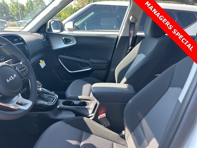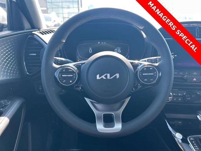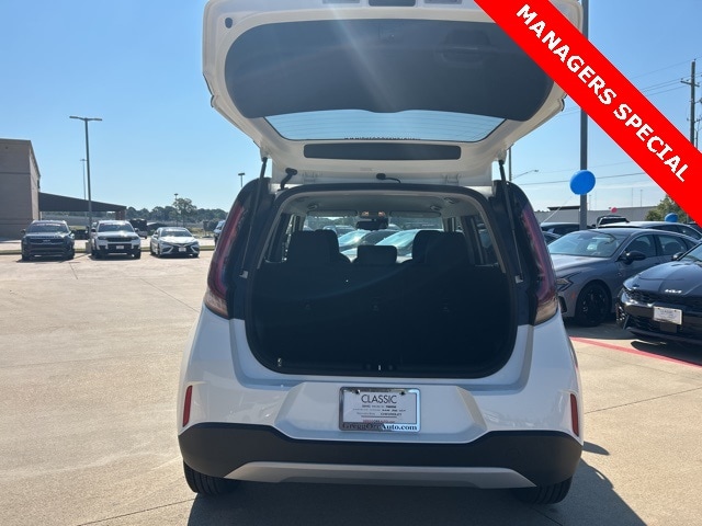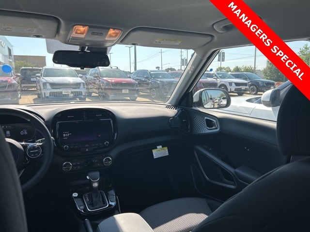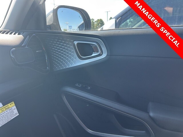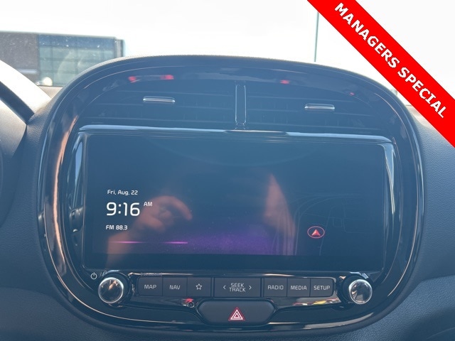 The 2025 Kia Soul comes with the following features; 4-Wheel Disc Brakes, 6 Speakers, 6.5J x 16" Alloy Wheels, ABS brakes, Air Conditioning, Alloy wheels, AM/FM radio: SiriusXM, Apple CarPlay & Android Auto, Auto High-beam Headlights, Automatic temperature control, Brake assist, Bumpers: body-color, Compass, Delay-off headlights, Driver door bin, Driver vanity mirror, Dual front impact airbags, Dual front side impact airbags, Electronic Stability Control, Emergency communication system, Exterior Parking Camera Rear, Front anti-roll bar, Front Bucket Seats, Front Center Armrest, Front dual zone A/C, Front reading lights, Front wheel independent suspension, Fully automatic headlights, Illuminated entry, Low tire pressure warning, Navigation System, Occupant sensing airbag, Outside temperature display, Overhead airbag, Overhead console, Panic alarm, Passenger door bin, Passenger vanity mirror, Power door mirrors, Power driver seat, Power steering, Power windows, Radio data system, Radio: AM/FM/MP3/HD Audio System, Rear window defroster, Rear window wiper, Remote keyless entry, Speed control, Speed-sensing steering, Split folding rear seat, Steering wheel mounted audio controls, Tachometer, Telescoping steering wheel, Tilt steering wheel, Traction control, Trip computer, Variably intermittent wipers, and Woven & Tricot Cloth Seat Trim.