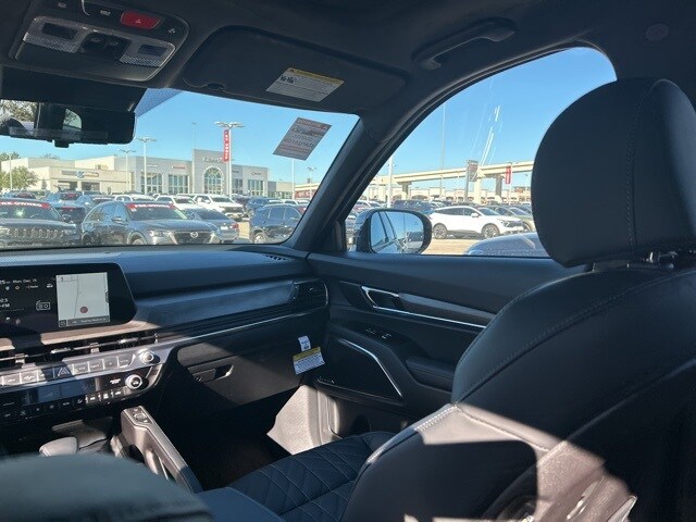 The 2025 Kia Telluride comes with the following features; 10 Speakers, 3rd row seats: split-bench, 4-Wheel Disc Brakes, ABS brakes, Air Conditioning, Alloy wheels, AM/FM radio: SiriusXM, Apple CarPlay & Android Auto, Auto High-beam Headlights, Auto-dimming Rear-View mirror, Auto-leveling suspension, Automatic temperature control, Brake assist, Bumpers: body-color, Cargo Cover, Carpeted Floor Mats, Compass, Delay-off headlights, Driver door bin, Driver vanity mirror, Dual front impact airbags, Dual front side impact airbags, Electronic Stability Control, Emergency communication system: 911 Connect, Exterior Parking Camera Rear, Four wheel independent suspension, Front anti-roll bar, Front Bucket Seats, Front Center Armrest, Front dual zone A/C, Front fog lights, Front reading lights, Fully automatic headlights, Garage door transmitter: HomeLink, harman/kardon® Speakers, Heads-Up Display, Heated & Ventilated Front Bucket Seats, Heated door mirrors, Heated front seats, Heated rear seats, Heated steering wheel, Illuminated entry, Knee airbag, Leather Shift Knob, Leather steering wheel, Low tire pressure warning, Memory seat, Nappa Leather Seat Trim, Navigation System, Occupant sensing airbag, Outside temperature display, Overhead airbag, Overhead console, Panic alarm, Passenger door bin, Passenger vanity mirror, Power door mirrors, Power driver seat, Power Liftgate, Power moonroof, Power passenger seat, Power steering, Power windows, Radio data system, Radio: AM/FM Harman Kardon Audio System, Rain sensing wipers, Rear air conditioning, Rear anti-roll bar, Rear audio controls, Rear reading lights, Rear side impact airbag, Rear window defroster, Rear window wiper, Reclining 3rd row seat, Remote keyless entry, Security system, Speed control, Speed-sensing steering, Split folding rear seat, Spoiler, Steering wheel mounted audio controls, Tachometer, Telescoping steering wheel, Tilt steering wheel, Traction control, Trip computer, Turn signal indicator mirrors, Variably intermittent wipers, Ventilated front seats, Ventilated rear seats, and Wheels: 18" x 7.5" Black Finish X-PRO Exclusive.