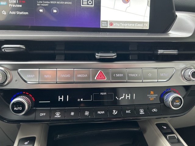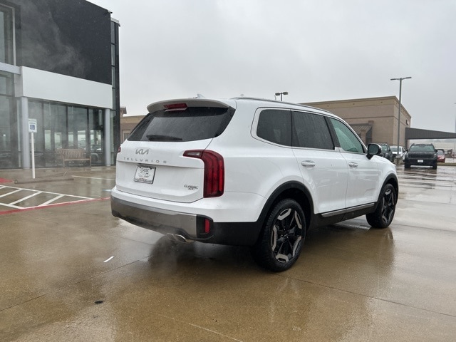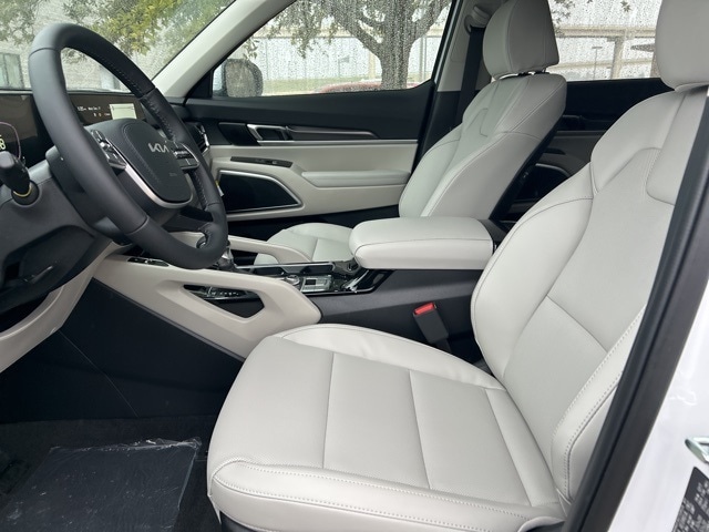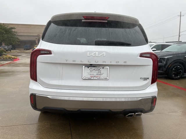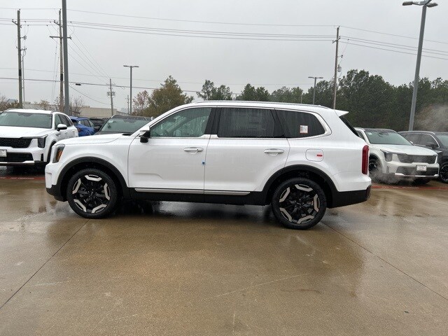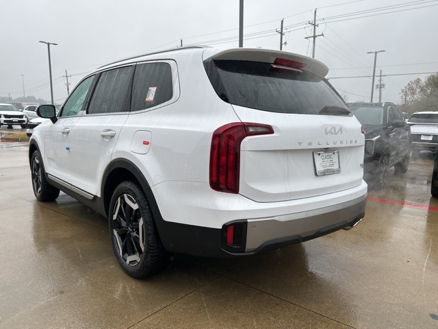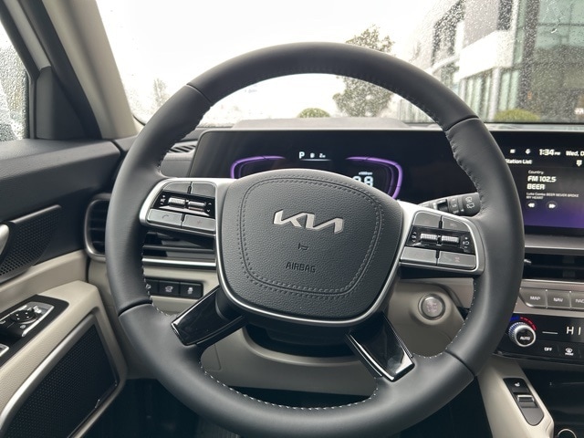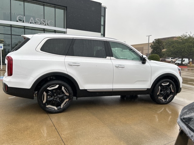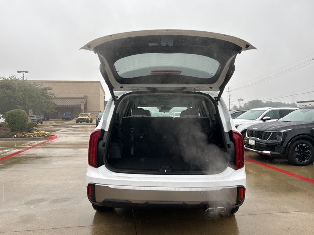 The 2025 Kia Telluride comes with the following features; 3rd row seats: split-bench, 4-Wheel Disc Brakes, 6 Speakers, ABS brakes, Air Conditioning, Alloy wheels, AM/FM radio: SiriusXM, Apple CarPlay & Android Auto, Auto High-beam Headlights, Automatic temperature control, Brake assist, Bumpers: body-color, Carpeted Floor Mats, Delay-off headlights, Driver door bin, Driver vanity mirror, Dual front impact airbags, Dual front side impact airbags, Electronic Stability Control, Emergency communication system: 911 Connect, Exterior Parking Camera Rear, Four wheel independent suspension, Front anti-roll bar, Front Bucket Seats, Front Center Armrest, Front dual zone A/C, Front reading lights, Fully automatic headlights, Heated door mirrors, Heated Front Bucket Seats, Heated front seats, Illuminated entry, Knee airbag, Leather Shift Knob, Leather steering wheel, Low tire pressure warning, Navigation System, Occupant sensing airbag, Outside temperature display, Overhead airbag, Overhead console, Panic alarm, Passenger door bin, Passenger vanity mirror, Power door mirrors, Power driver seat, Power Liftgate, Power moonroof, Power steering, Power windows, Radio data system, Radio: AM/FM Display Audio System, Rear air conditioning, Rear anti-roll bar, Rear audio controls, Rear reading lights, Rear side impact airbag, Rear window defroster, Rear window wiper, Reclining 3rd row seat, Remote keyless entry, Security system, Speed control, Speed-sensing steering, Split folding rear seat, Spoiler, Steering wheel mounted audio controls, SynTex Synthetic Leather Seat Trim, Tachometer, Telescoping steering wheel, Tilt steering wheel, Traction control, Trip computer, Turn signal indicator mirrors, Variably intermittent wipers, and Wheels: 20" x 7.5" Black Finish.
