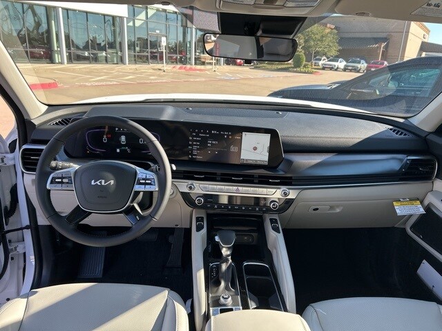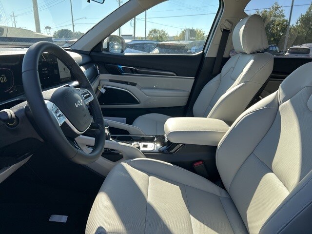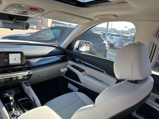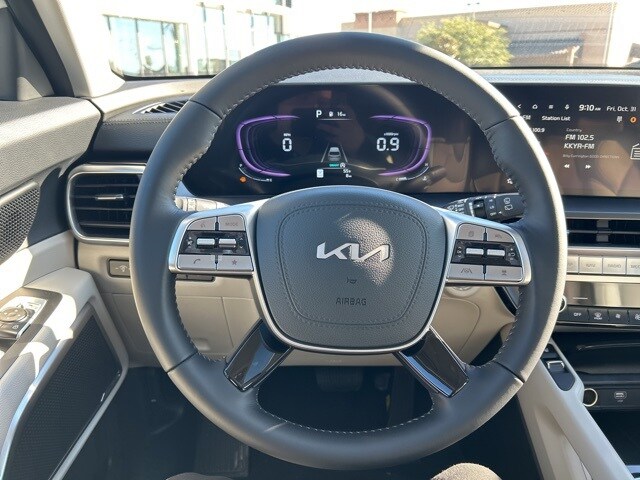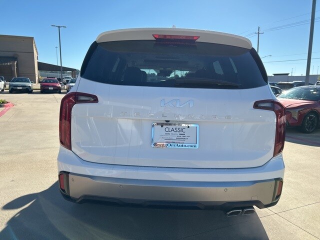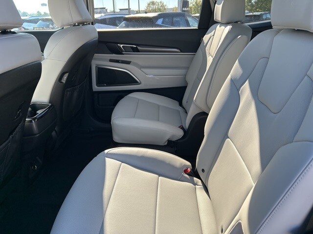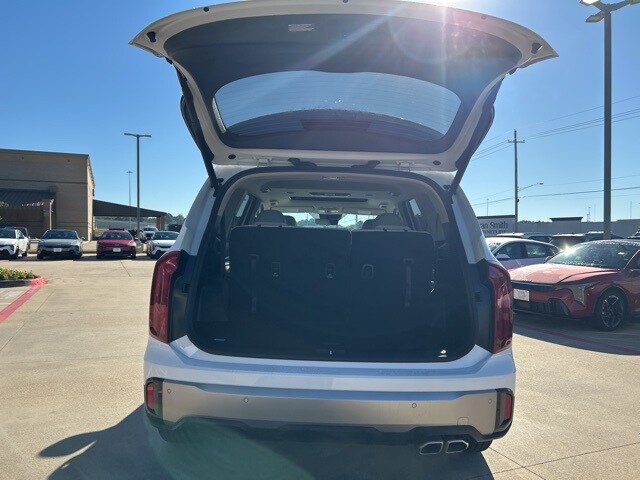 The 2025 Kia Telluride comes with the following features; 3rd row seats: split-bench, 4-Wheel Disc Brakes, 6 Speakers, ABS brakes, Air Conditioning, Alloy wheels, AM/FM radio: SiriusXM, Apple CarPlay & Android Auto, Auto High-beam Headlights, Automatic temperature control, Brake assist, Bumpers: body-color, Carpeted Floor Mats, Delay-off headlights, Driver door bin, Driver vanity mirror, Dual front impact airbags, Dual front side impact airbags, Electronic Stability Control, Emergency communication system: 911 Connect, Exterior Parking Camera Rear, Four wheel independent suspension, Front anti-roll bar, Front Bucket Seats, Front Center Armrest, Front dual zone A/C, Front reading lights, Fully automatic headlights, Heated door mirrors, Heated Front Bucket Seats, Heated front seats, Illuminated entry, Knee airbag, Leather Shift Knob, Leather steering wheel, Low tire pressure warning, Navigation System, Occupant sensing airbag, Outside temperature display, Overhead airbag, Overhead console, Panic alarm, Passenger door bin, Passenger vanity mirror, Power door mirrors, Power driver seat, Power Liftgate, Power moonroof, Power steering, Power windows, Radio data system, Radio: AM/FM Display Audio System, Rear air conditioning, Rear anti-roll bar, Rear audio controls, Rear reading lights, Rear side impact airbag, Rear window defroster, Rear window wiper, Reclining 3rd row seat, Remote keyless entry, Security system, Speed control, Speed-sensing steering, Split folding rear seat, Spoiler, Steering wheel mounted audio controls, SynTex Synthetic Leather Seat Trim, Tachometer, Telescoping steering wheel, Tilt steering wheel, Traction control, Trip computer, Turn signal indicator mirrors, Variably intermittent wipers, and Wheels: 20" x 7.5" Black Finish.
