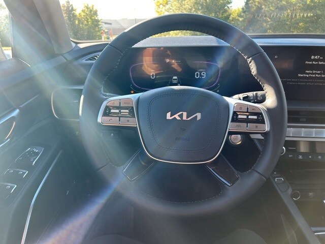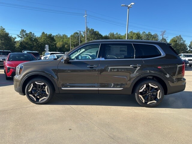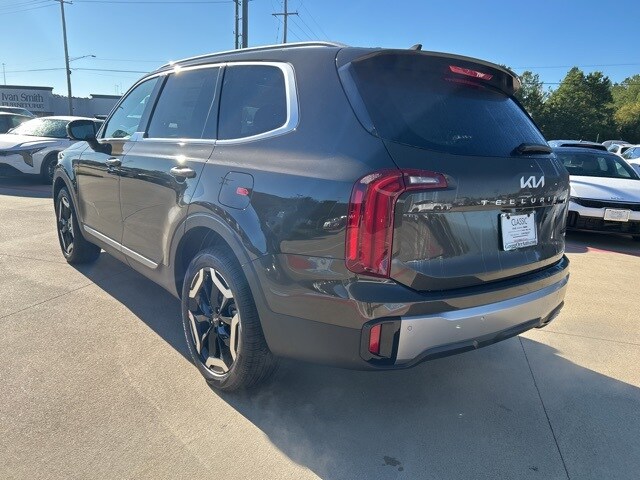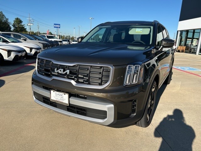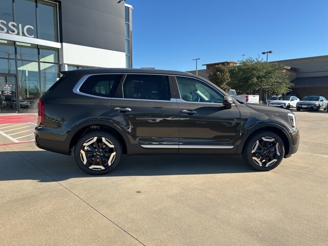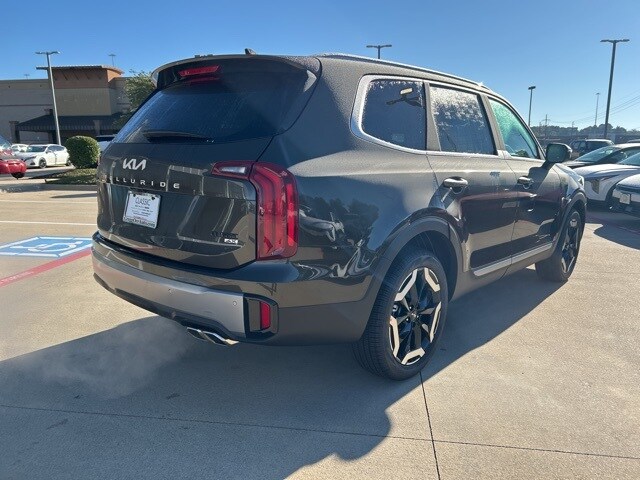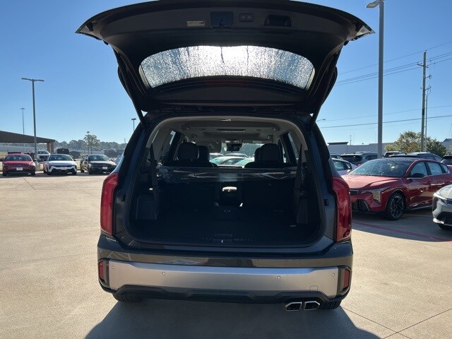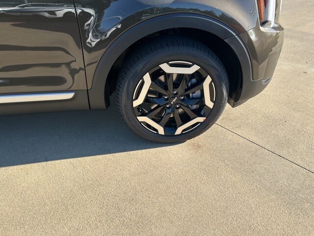 The 2025 Kia Telluride comes with the following features; 3rd row seats: split-bench, 4-Wheel Disc Brakes, 6 Speakers, ABS brakes, Air Conditioning, Alloy wheels, AM/FM radio: SiriusXM, Apple CarPlay & Android Auto, Auto High-beam Headlights, Automatic temperature control, Brake assist, Bumpers: body-color, Delay-off headlights, Driver door bin, Driver vanity mirror, Dual front impact airbags, Dual front side impact airbags, Electronic Stability Control, Emergency communication system: 911 Connect, Exterior Parking Camera Rear, Four wheel independent suspension, Front anti-roll bar, Front Bucket Seats, Front Center Armrest, Front dual zone A/C, Front reading lights, Fully automatic headlights, Heated door mirrors, Heated Front Bucket Seats, Heated front seats, Illuminated entry, Knee airbag, Leather Shift Knob, Leather steering wheel, Low tire pressure warning, Navigation System, Occupant sensing airbag, Outside temperature display, Overhead airbag, Overhead console, Panic alarm, Passenger door bin, Passenger vanity mirror, Power door mirrors, Power driver seat, Power Liftgate, Power moonroof, Power steering, Power windows, Radio data system, Radio: AM/FM Display Audio System, Rear air conditioning, Rear anti-roll bar, Rear audio controls, Rear reading lights, Rear side impact airbag, Rear window defroster, Rear window wiper, Reclining 3rd row seat, Remote keyless entry, Security system, Speed control, Speed-sensing steering, Split folding rear seat, Spoiler, Steering wheel mounted audio controls, SynTex Synthetic Leather Seat Trim, Tachometer, Telescoping steering wheel, Tilt steering wheel, Traction control, Trip computer, Turn signal indicator mirrors, Variably intermittent wipers, and Wheels: 20" x 7.5" Black Finish.