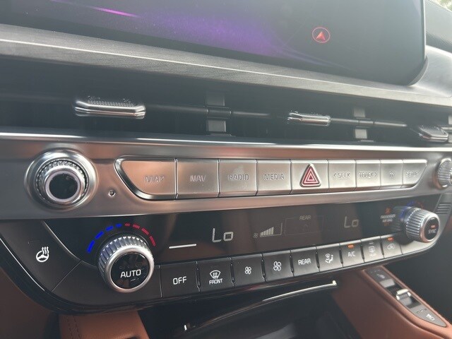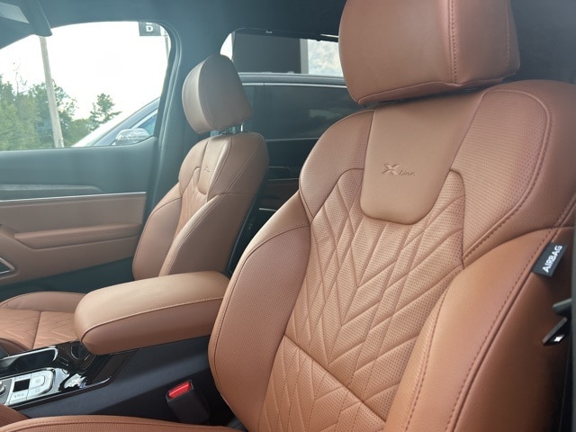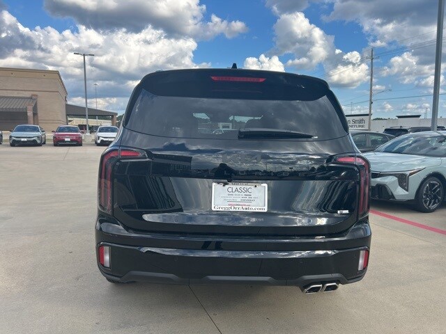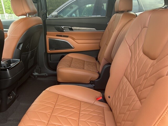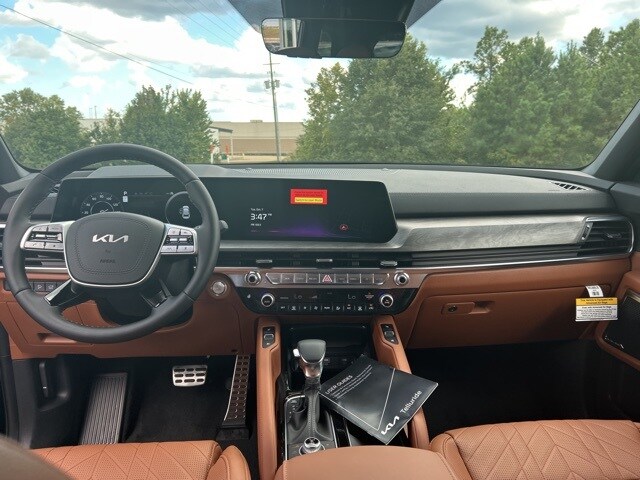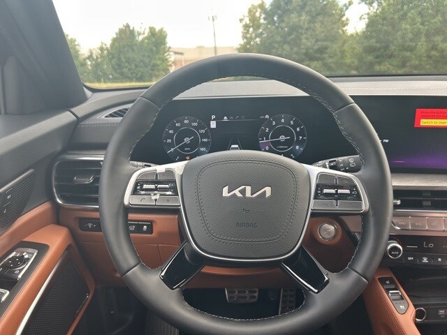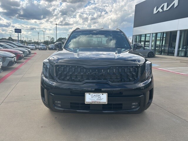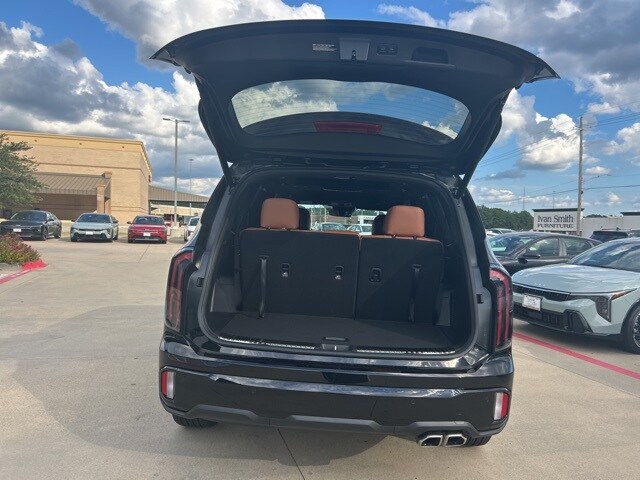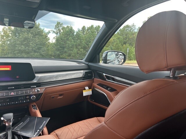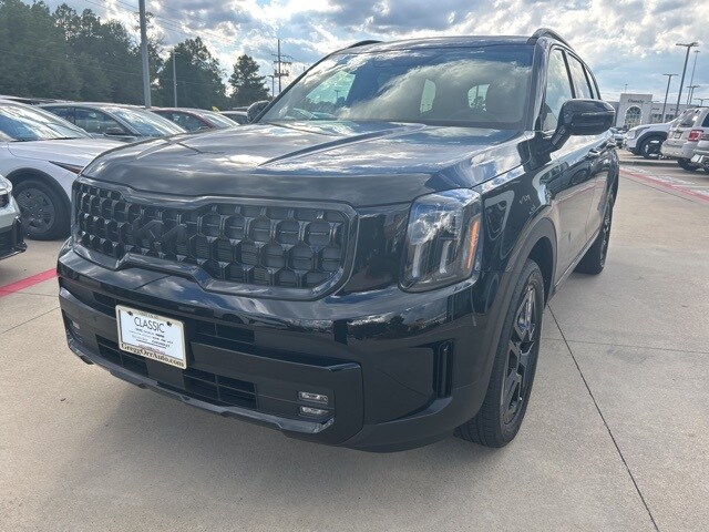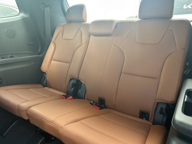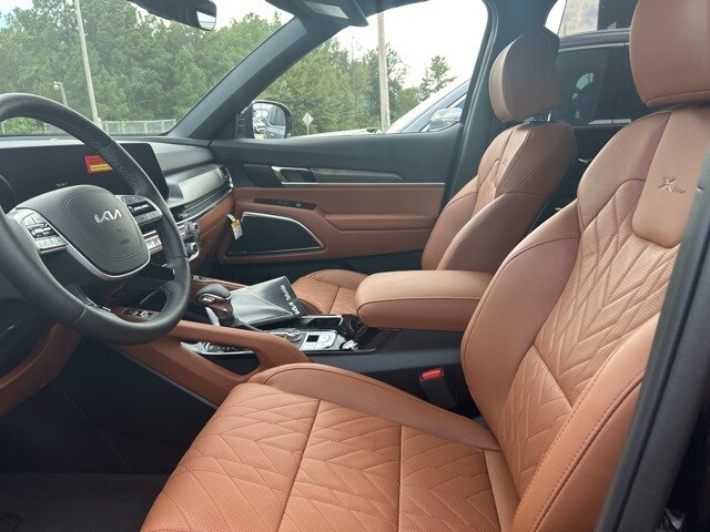 The 2025 Kia Telluride comes with the following features; Terracotta Interior Color Package, 10 Speakers, 3rd row seats: split-bench, 4-Wheel Disc Brakes, ABS brakes, Air Conditioning, Alloy wheels, AM/FM radio: SiriusXM, Apple CarPlay & Android Auto, Auto High-beam Headlights, Auto-dimming Rear-View mirror, Auto-leveling suspension, Automatic temperature control, Brake assist, Bumpers: body-color, Carpeted Floor Mats, Compass, Delay-off headlights, Driver door bin, Driver vanity mirror, Dual front impact airbags, Dual front side impact airbags, Electronic Stability Control, Emergency communication system: 911 Connect, Exterior Parking Camera Rear, Four wheel independent suspension, Front anti-roll bar, Front Bucket Seats, Front Center Armrest, Front dual zone A/C, Front fog lights, Front reading lights, Fully automatic headlights, Garage door transmitter: HomeLink, harman/kardon® Speakers, Heated & Ventilated Front Bucket Seats, Heated door mirrors, Heated front seats, Heated steering wheel, Illuminated entry, Knee airbag, Leather Seat Trim, Leather Shift Knob, Leather steering wheel, Low tire pressure warning, Memory seat, Navigation System, Occupant sensing airbag, Outside temperature display, Overhead airbag, Overhead console, Panic alarm, Passenger door bin, Passenger vanity mirror, Power door mirrors, Power driver seat, Power Liftgate, Power moonroof, Power passenger seat, Power steering, Power windows, Radio data system, Radio: AM/FM Harman Kardon Audio System, Rear air conditioning, Rear anti-roll bar, Rear audio controls, Rear reading lights, Rear side impact airbag, Rear window defroster, Rear window wiper, Reclining 3rd row seat, Remote keyless entry, Security system, Speed control, Speed-sensing steering, Split folding rear seat, Spoiler, Steering wheel mounted audio controls, Tachometer, Telescoping steering wheel, Tilt steering wheel, Traction control, Trip computer, Turn signal indicator mirrors, Variably intermittent wipers, Ventilated front seats, and Wheels: 20" x 7.5" Black Finish X-LINE Exclusive.
