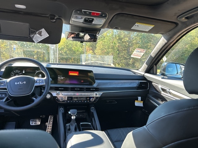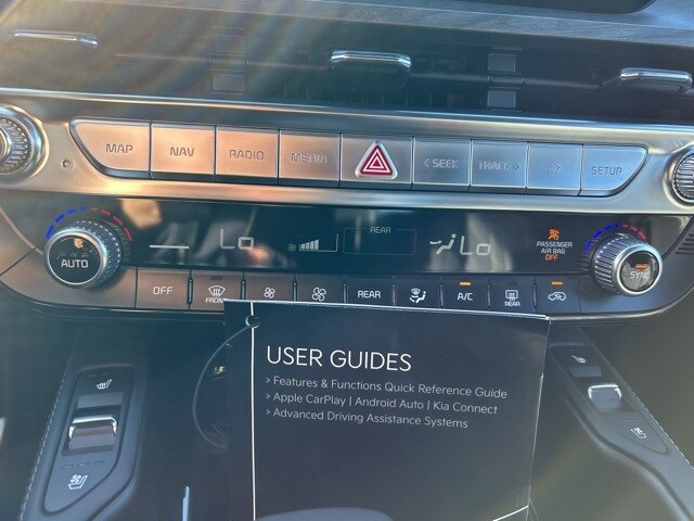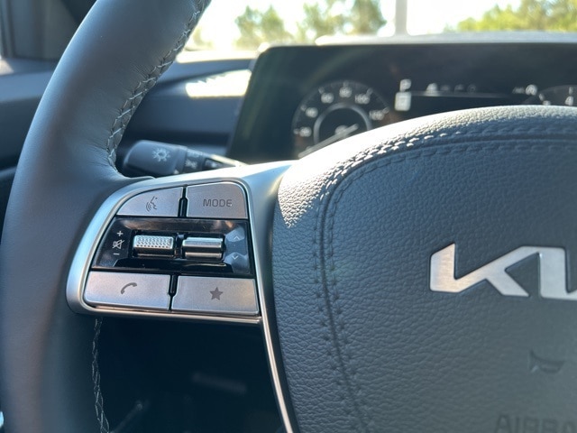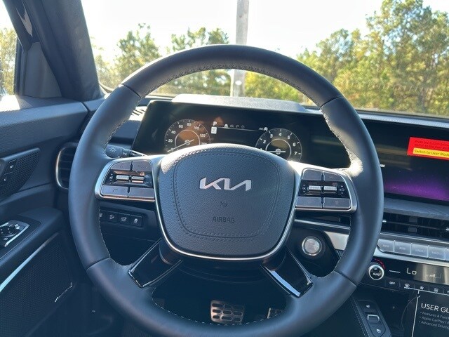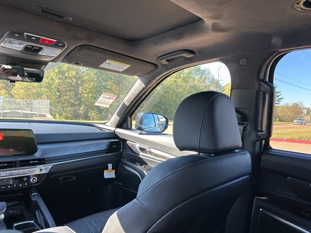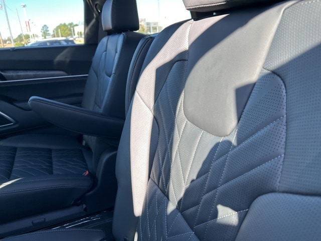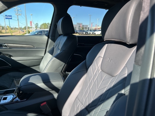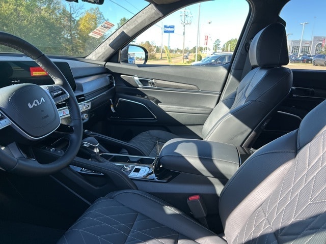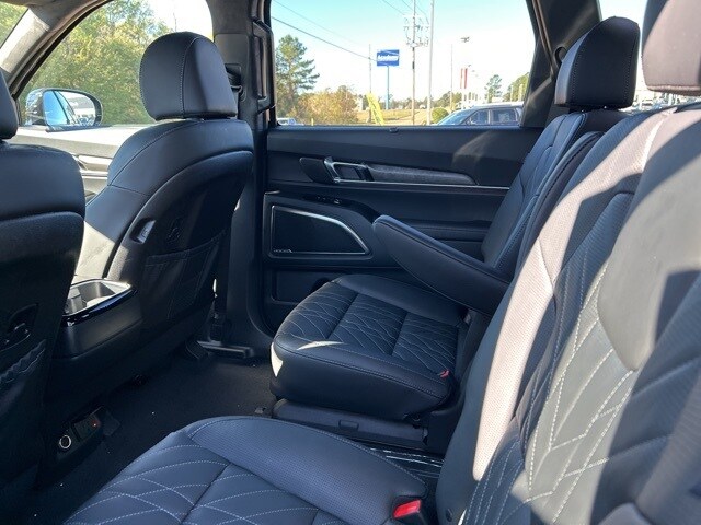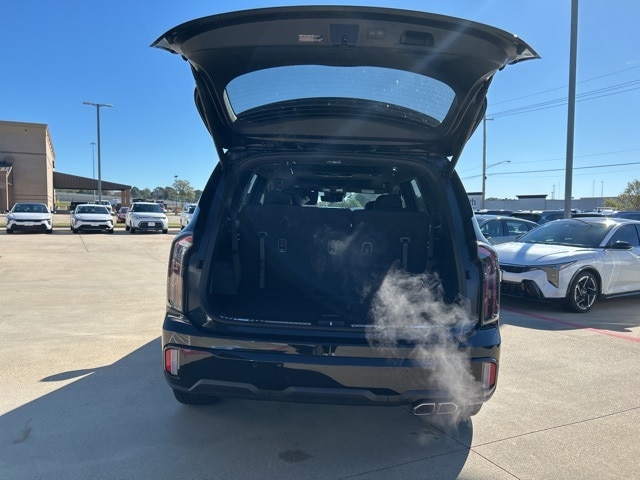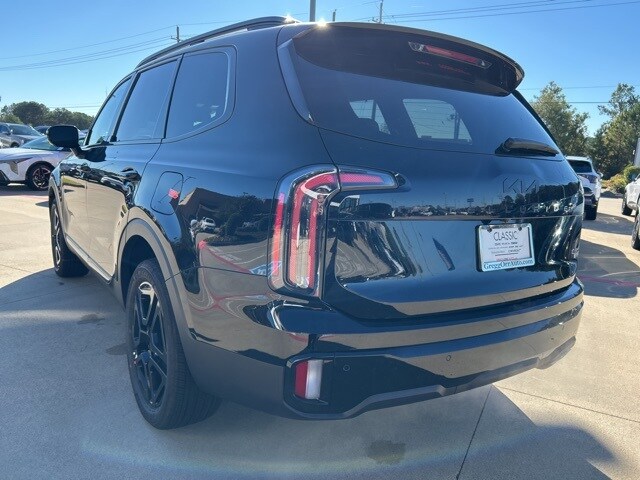 The 2025 Kia Telluride comes with the following features; 10 Speakers, 3rd row seats: split-bench, 4-Wheel Disc Brakes, ABS brakes, Air Conditioning, Alloy wheels, AM/FM radio: SiriusXM, Apple CarPlay & Android Auto, Auto High-beam Headlights, Auto-dimming Rear-View mirror, Auto-leveling suspension, Automatic temperature control, Brake assist, Bumpers: body-color, Carpeted Floor Mats, Compass, Delay-off headlights, Driver door bin, Driver vanity mirror, Dual front impact airbags, Dual front side impact airbags, Electronic Stability Control, Emergency communication system: 911 Connect, Exterior Parking Camera Rear, Four wheel independent suspension, Front anti-roll bar, Front Bucket Seats, Front Center Armrest, Front dual zone A/C, Front fog lights, Front reading lights, Fully automatic headlights, Garage door transmitter: HomeLink, harman/kardon® Speakers, Heads-Up Display, Heated & Ventilated Front Bucket Seats, Heated door mirrors, Heated front seats, Heated rear seats, Heated steering wheel, Illuminated entry, Knee airbag, Leather Shift Knob, Leather steering wheel, Low tire pressure warning, Memory seat, Nappa Leather Seat Trim, Navigation System, Occupant sensing airbag, Outside temperature display, Overhead airbag, Overhead console, Panic alarm, Passenger door bin, Passenger vanity mirror, Power door mirrors, Power driver seat, Power Liftgate, Power moonroof, Power passenger seat, Power steering, Power windows, Radio data system, Radio: AM/FM Harman Kardon Audio System, Rain sensing wipers, Rear air conditioning, Rear anti-roll bar, Rear audio controls, Rear reading lights, Rear side impact airbag, Rear window defroster, Rear window wiper, Reclining 3rd row seat, Remote keyless entry, Security system, Speed control, Speed-sensing steering, Split folding rear seat, Spoiler, Steering wheel mounted audio controls, Tachometer, Telescoping steering wheel, Tilt steering wheel, Traction control, Trip computer, Turn signal indicator mirrors, Variably intermittent wipers, Ventilated front seats, Ventilated rear seats, and Wheels: 20" x 7.5" Black Finish X-LINE Exclusive.