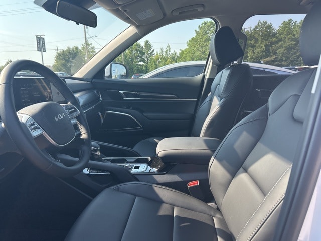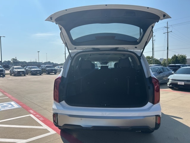 The 2025 Kia Telluride comes with the following features; 3rd row seats: split-bench, 4-Wheel Disc Brakes, 6 Speakers, ABS brakes, Air Conditioning, Alloy wheels, AM/FM radio: SiriusXM, Apple CarPlay & Android Auto, Auto High-beam Headlights, Automatic temperature control, Brake assist, Bumpers: body-color, Delay-off headlights, Driver door bin, Driver vanity mirror, Dual front impact airbags, Dual front side impact airbags, Electronic Stability Control, Emergency communication system: 911 Connect, Exterior Parking Camera Rear, Four wheel independent suspension, Front anti-roll bar, Front Bucket Seats, Front Center Armrest, Front dual zone A/C, Front reading lights, Fully automatic headlights, Heated door mirrors, Illuminated entry, Knee airbag, Leather steering wheel, Low tire pressure warning, Navigation System, Occupant sensing airbag, Outside temperature display, Overhead airbag, Overhead console, Panic alarm, Passenger door bin, Passenger vanity mirror, Power door mirrors, Power steering, Power windows, Radio data system, Radio: AM/FM Display Audio System, Rear air conditioning, Rear anti-roll bar, Rear audio controls, Rear reading lights, Rear seat center armrest, Rear side impact airbag, Rear window defroster, Rear window wiper, Reclining 3rd row seat, Remote keyless entry, Security system, Speed control, Speed-sensing steering, Split folding rear seat, Spoiler, Steering wheel mounted audio controls, SynTex Synthetic Leather Seat Trim, Tachometer, Telescoping steering wheel, Tilt steering wheel, Traction control, Trip computer, Turn signal indicator mirrors, Variably intermittent wipers, and Wheels: 18" x 7.5" Silver Finish Alloy.