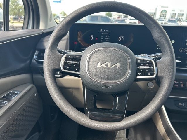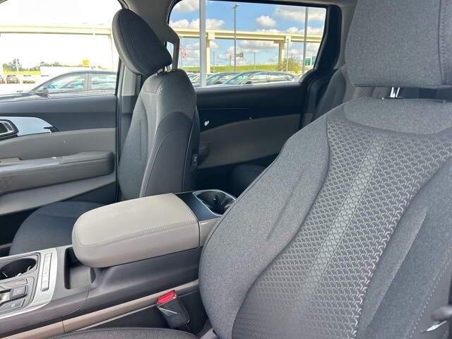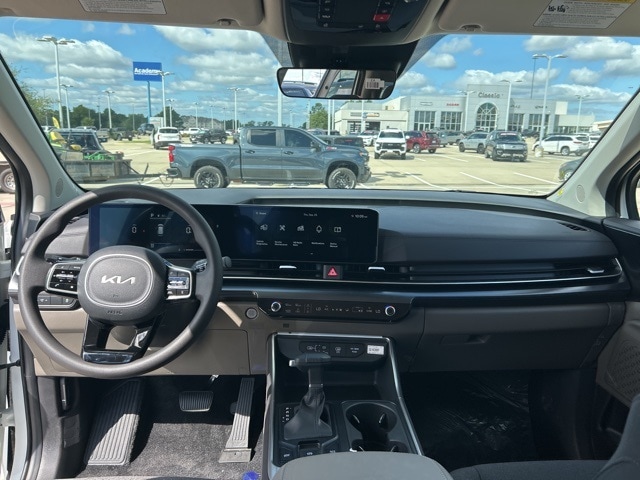 The 2026 Kia Carnival comes with the following features; 3.51 Axle Ratio, 3rd row seats: split-bench, 4-Wheel Disc Brakes, 6 Speakers, 6.5J x 17" Alloy Wheels, ABS brakes, Air Conditioning, Alloy wheels, AM/FM radio: SiriusXM, Apple CarPlay & Android Auto, Auto High-beam Headlights, Automatic temperature control, Brake assist, Bumpers: body-color, Cargo Mat, Cargo Net, Cloth Seat Trim, Compass, Delay-off headlights, Driver door bin, Driver vanity mirror, Dual front impact airbags, Dual front side impact airbags, Electronic Stability Control, Emergency communication system, Exterior Parking Camera Rear, Four wheel independent suspension, Front anti-roll bar, Front Bucket Seats, Front Center Armrest, Front dual zone A/C, Front reading lights, Fully automatic headlights, Heated door mirrors, Illuminated entry, Knee airbag, Low tire pressure warning, Navigation System, Occupant sensing airbag, Outside temperature display, Overhead airbag, Overhead console, Panic alarm, Passenger door bin, Passenger vanity mirror, Power door mirrors, Power steering, Power windows, Radio: AM/FM/HD Audio System, Rear air conditioning, Rear anti-roll bar, Rear reading lights, Rear window defroster, Rear window wiper, Reclining 3rd row seat, Remote keyless entry, Security system, Speed control, Speed-sensing steering, Split folding rear seat, Spoiler, Steering wheel mounted audio controls, Tachometer, Telescoping steering wheel, Tilt steering wheel, Traction control, Trip computer, Turn signal indicator mirrors, and Variably intermittent wipers.