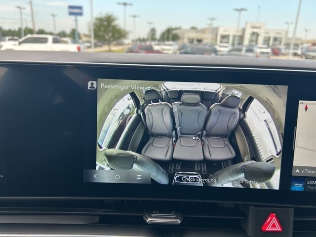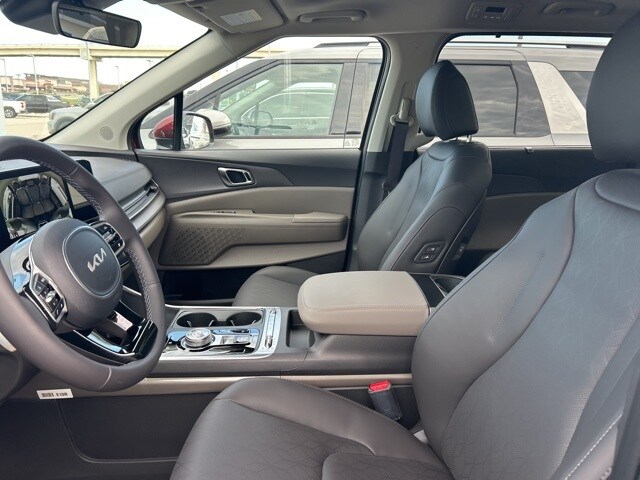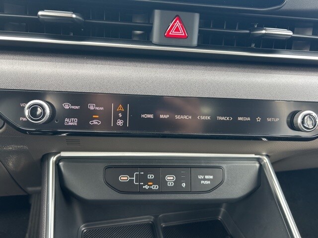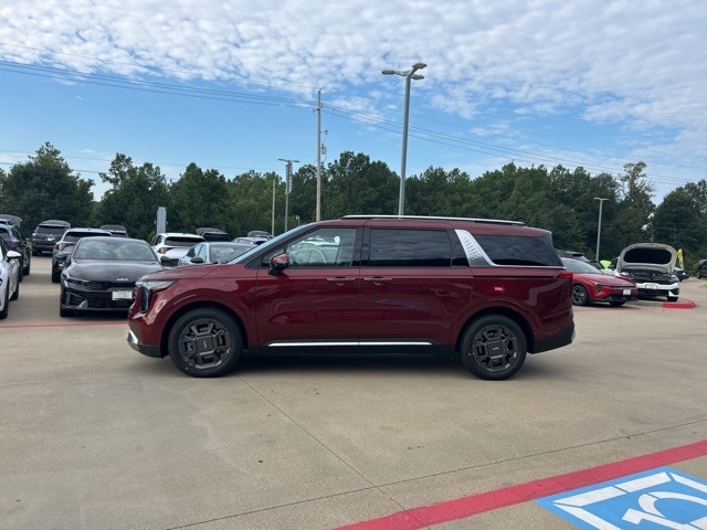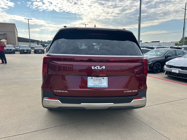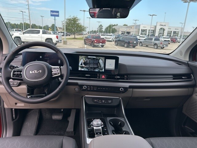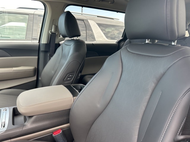 The 2026 Kia Carnival Hybrid comes with the following features; 1.6L I4 DGI Hybrid Turbocharged DOHC 16V LEV3-SULEV30, 3rd row seats: split-bench, 4-Wheel Disc Brakes, 8 Speakers, ABS brakes, Air Conditioning, Alloy wheels, AM/FM radio: SiriusXM, Apple CarPlay & Android Auto, Artificial Leather Seat Trim, Auto High-beam Headlights, Automatic temperature control, Brake assist, Bumpers: body-color, Compass, Delay-off headlights, Driver door bin, Driver vanity mirror, Dual front impact airbags, Dual front side impact airbags, Electronic Stability Control, Emergency communication system, Exterior Parking Camera Rear, Four wheel independent suspension, Front anti-roll bar, Front Bucket Seats, Front Center Armrest, Front dual zone A/C, Front fog lights, Front reading lights, Fully automatic headlights, Heated & Ventilated Front Bucket Seats, Heated door mirrors, Heated front seats, Illuminated entry, Knee airbag, Leather Shift Knob, Leather steering wheel, Low tire pressure warning, Memory seat, Navigation System, Occupant sensing airbag, Outside temperature display, Overhead airbag, Overhead console, Panic alarm, Passenger door bin, Passenger vanity mirror, Power 2nd-Row Moonroof, Power door mirrors, Power driver seat, Power Liftgate, Power moonroof, Power passenger seat, Power steering, Power windows, Radio: Navigation System w/SiriusXM, Rain sensing wipers, Rear air conditioning, Rear anti-roll bar, Rear reading lights, Rear window defroster, Rear window wiper, Reclining 3rd row seat, Remote keyless entry, Security system, Speed control, Speed-sensing steering, Split folding rear seat, Spoiler, Steering wheel mounted audio controls, Tachometer, Telescoping steering wheel, Tilt steering wheel, Traction control, Trip computer, Turn signal indicator mirrors, Variably intermittent wipers, Ventilated front seats, Wheels: 19" Black Alloy, and Wheels: 19" Black D-Cut Customizing. 1.6L I4 DGI Hybrid Turbocharged DOHC 16V LEV3-SULEV30.