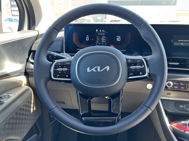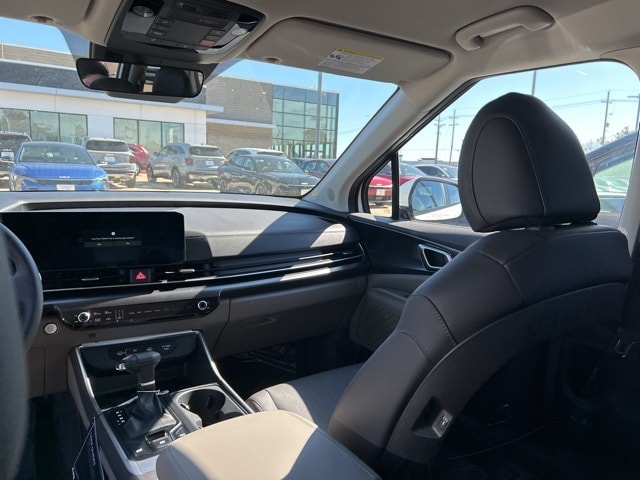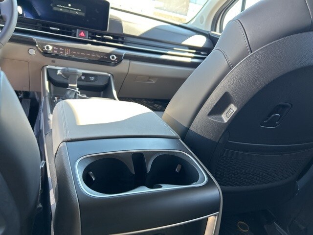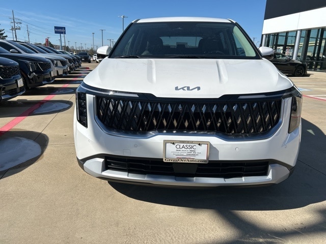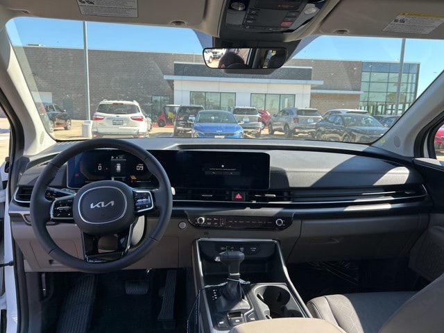 The 2026 Kia Carnival comes with the following features; 3.51 Axle Ratio, 3rd row seats: split-bench, 4-Wheel Disc Brakes, 6 Speakers, 6.5J x 17" Alloy Wheels, ABS brakes, Air Conditioning, Alloy wheels, AM/FM radio: SiriusXM, Apple CarPlay & Android Auto, Artificial Leather Seat Trim, Auto High-beam Headlights, Automatic temperature control, Brake assist, Bumpers: body-color, Carpeted Floor Mats (8-Passenger), Compass, Delay-off headlights, Driver door bin, Driver vanity mirror, Dual front impact airbags, Dual front side impact airbags, Electronic Stability Control, Emergency communication system, Exterior Parking Camera Rear, Four wheel independent suspension, Front anti-roll bar, Front Bucket Seats, Front Center Armrest, Front dual zone A/C, Front reading lights, Fully automatic headlights, Heated door mirrors, Heated Front Bucket Seats, Heated front seats, Illuminated entry, Knee airbag, Leather Shift Knob, Leather steering wheel, Low tire pressure warning, Navigation System, Occupant sensing airbag, Outside temperature display, Overhead airbag, Overhead console, Panic alarm, Passenger door bin, Passenger vanity mirror, Power door mirrors, Power driver seat, Power steering, Power windows, Radio: AM/FM/HD Audio System, Rear air conditioning, Rear anti-roll bar, Rear reading lights, Rear window defroster, Rear window wiper, Reclining 3rd row seat, Remote keyless entry, Security system, Speed control, Speed-sensing steering, Split folding rear seat, Spoiler, Steering wheel mounted audio controls, Tachometer, Telescoping steering wheel, Tilt steering wheel, Traction control, Trip computer, Turn signal indicator mirrors, and Variably intermittent wipers.