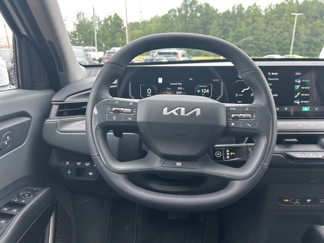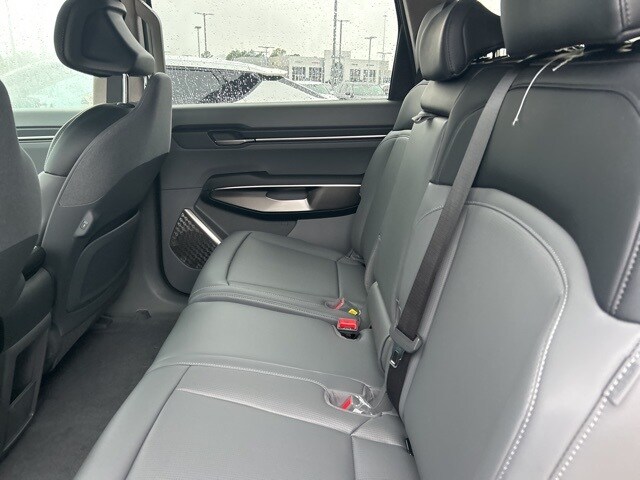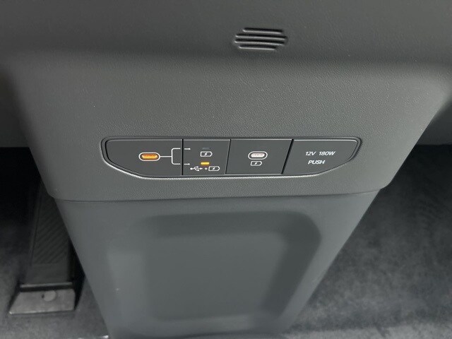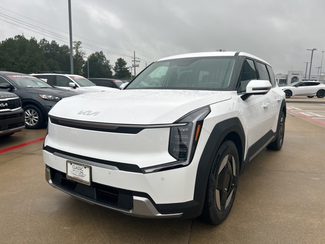 The 2026 Kia EV9 comes with the following features; 3rd row seats: split-bench, 4-Wheel Disc Brakes, 8 Speakers, ABS brakes, Air Conditioning, Alloy wheels, AM/FM radio: SiriusXM, Apple CarPlay & Android Auto, Auto High-beam Headlights, Auto-dimming Rear-View mirror, Automatic temperature control, Brake assist, Bumpers: body-color, Cargo Cover, Carpeted Floor Mat, 7-Passenger, Delay-off headlights, Driver door bin, Driver vanity mirror, Dual front impact airbags, Dual front side impact airbags, Electronic Stability Control, Emergency communication system: 911 Connect, Exterior Parking Camera Rear, Folding Cargo Tray, Four wheel independent suspension, Front anti-roll bar, Front Bucket Seats, Front Center Armrest w/Storage, Front dual zone A/C, Front reading lights, Full SynTex Leather Seat Trim, Fully automatic headlights, Garage door transmitter: HomeLink, Heated & Ventilated Front Bucket Seats, Heated door mirrors, Heated front seats, Illuminated entry, Knee airbag, Low tire pressure warning, Navigation System, Occupant sensing airbag, Outside temperature display, Overhead airbag, Overhead console, Panic alarm, Passenger door bin, Passenger vanity mirror, Power door mirrors, Power driver seat, Power Liftgate, Power moonroof, Power passenger seat, Power steering, Power windows, Radio data system, Radio: AM/FM/HD Radio/SiriusXM, Rain sensing wipers, Rear air conditioning, Rear anti-roll bar, Rear reading lights, Rear seat center armrest, Rear window defroster, Rear window wiper, Reclining 3rd row seat, Remote keyless entry, Security system, Speed control, Speed-sensing steering, Split folding rear seat, Spoiler, Steering wheel mounted audio controls, Telescoping steering wheel, Tilt steering wheel, Traction control, Trip computer, Turn signal indicator mirrors, Variably intermittent wipers, Ventilated front seats, and Wheels: 19" Black & Machined Finished Alloy.