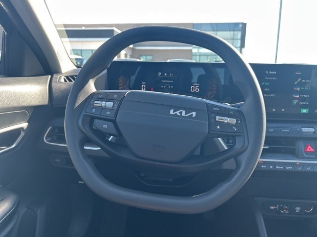 The 2026 Kia K4 comes with the following features; 4-Wheel Disc Brakes, 6 Speakers, ABS brakes, Air Conditioning, Alloy wheels, AM/FM radio: SiriusXM, Apple CarPlay & Android Auto, Auto High-beam Headlights, Brake assist, Bumpers: body-color, Cloth Seat Trim, Delay-off headlights, Driver door bin, Driver vanity mirror, Dual front impact airbags, Dual front side impact airbags, Electronic Stability Control, Emergency communication system: 911 Connect, Front anti-roll bar, Front Bucket Seats, Front Center Armrest, Front reading lights, Front wheel independent suspension, Fully automatic headlights, Heated door mirrors, Illuminated entry, Low tire pressure warning, Occupant sensing airbag, Outside temperature display, Overhead airbag, Overhead console, Panic alarm, Passenger door bin, Passenger vanity mirror, Power door mirrors, Power steering, Power windows, Radio data system, Radio: 12.3" Touchscreen Audio Display, Rear side impact airbag, Rear window defroster, Remote keyless entry, Security system, Speed control, Split folding rear seat, Steering wheel mounted audio controls, Tachometer, Telescoping steering wheel, Tilt steering wheel, Traction control, Trip computer, Variably intermittent wipers, and Wheels: 16" x 6.5J Dark Gray Alloy.