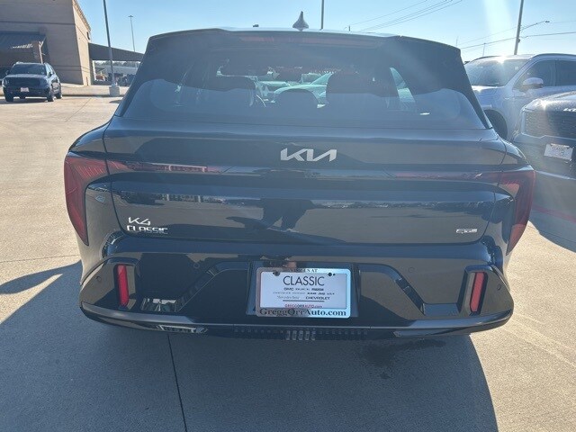 The 2026 Kia K4 comes with the following features; GT-Line Red Interior Color Package, GT-Line Turbo Technology Package (Ambient Lighting, Blind-Spot Collision-Avoidance Assist, Blind-Spot View Monitor, Driver's Seat and Mirrors Memory, Forward/Reverse/Side Parking Distance Warning, Heated Steering Wheel, Highway Driving Assist 2, Parking Collision Avoidance-Assist - Reverse, Smartphone Digital Key, Surround View Monitor, and Ventilated Front Seats), 4-Wheel Disc Brakes, 8 Speakers, ABS brakes, Air Conditioning, Alloy wheels, AM/FM radio: SiriusXM, Apple CarPlay & Android Auto, Auto High-beam Headlights, Automatic temperature control, Brake assist, Bumpers: body-color, Carpeted Floor Mats, Delay-off headlights, Driver door bin, Driver vanity mirror, Dual front impact airbags, Dual front side impact airbags, Electronic Stability Control, Emergency communication system: 911 Connect, Four wheel independent suspension, Front anti-roll bar, Front Bucket Seats, Front Center Armrest, Front dual zone A/C, Front fog lights, Front Heated Bucket Seats, Front reading lights, Fully automatic headlights, harman/kardon® Speakers, Heated door mirrors, Heated front seats, Illuminated entry, Low tire pressure warning, Navigation System, Occupant sensing airbag, Outside temperature display, Overhead airbag, Overhead console, Panic alarm, Passenger door bin, Passenger vanity mirror, Power door mirrors, Power driver seat, Power moonroof, Power steering, Power windows, Radio data system, Radio: 12.3" Touchscreen Audio Display, Rear anti-roll bar, Rear seat center armrest, Rear side impact airbag, Rear window defroster, Rear window wiper, Remote keyless entry, Security system, Speed control, Split folding rear seat, Spoiler, Sport steering wheel, Steering wheel mounted audio controls, SynTex Artificial Leather Seat Trim, Tachometer, Telescoping steering wheel, Tilt steering wheel, Traction control, Trip computer, Turn signal indicator mirrors, Variably intermittent wipers, and Wheels: 18" x 8.0J Black Alloy.