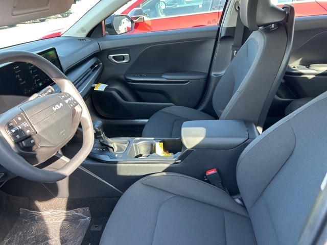 The 2026 Kia K4 comes with the following features; 4-Wheel Disc Brakes, 6 Speakers, ABS brakes, Air Conditioning, Alloy wheels, AM/FM radio: SiriusXM, Apple CarPlay & Android Auto, Auto High-beam Headlights, Brake assist, Bumpers: body-color, Cloth Seat Trim, Delay-off headlights, Driver door bin, Driver vanity mirror, Dual front impact airbags, Dual front side impact airbags, Electronic Stability Control, Emergency communication system: 911 Connect, Front anti-roll bar, Front Bucket Seats, Front Center Armrest, Front reading lights, Front wheel independent suspension, Fully automatic headlights, Heated door mirrors, Illuminated entry, Low tire pressure warning, Occupant sensing airbag, Outside temperature display, Overhead airbag, Overhead console, Panic alarm, Passenger door bin, Passenger vanity mirror, Power door mirrors, Power steering, Power windows, Radio data system, Radio: 12.3" Touchscreen Audio Display, Rear side impact airbag, Rear window defroster, Remote keyless entry, Security system, Speed control, Split folding rear seat, Steering wheel mounted audio controls, Tachometer, Telescoping steering wheel, Tilt steering wheel, Traction control, Trip computer, Variably intermittent wipers, and Wheels: 16" x 6.5J Dark Gray Alloy.