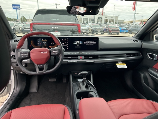 The 2026 Kia K4 comes with the following features; GT-Line Red Interior Color Package, GT-Line Sunroof Package (Wide Power Sunroof with Power Sunshade), 4-Wheel Disc Brakes, 6 Speakers, ABS brakes, Air Conditioning, Alloy wheels, AM/FM radio: SiriusXM, Apple CarPlay & Android Auto, Auto High-beam Headlights, Automatic temperature control, Brake assist, Bumpers: body-color, Delay-off headlights, Driver door bin, Driver vanity mirror, Dual front impact airbags, Dual front side impact airbags, Electronic Stability Control, Emergency communication system: 911 Connect, Four wheel independent suspension, Front anti-roll bar, Front Bucket Seats, Front Center Armrest, Front dual zone A/C, Front Heated Bucket Seats, Front reading lights, Fully automatic headlights, Heated door mirrors, Heated front seats, Illuminated entry, Low tire pressure warning, Occupant sensing airbag, Outside temperature display, Overhead airbag, Overhead console, Panic alarm, Passenger door bin, Passenger vanity mirror, Power door mirrors, Power driver seat, Power steering, Power windows, Radio data system, Radio: 12.3" Touchscreen Audio Display, Rear anti-roll bar, Rear seat center armrest, Rear side impact airbag, Rear window defroster, Remote keyless entry, Security system, Speed control, Split folding rear seat, Sport steering wheel, Steering wheel mounted audio controls, SynTex Artificial Leather Seat Trim, Tachometer, Telescoping steering wheel, Tilt steering wheel, Traction control, Trip computer, Turn signal indicator mirrors, Variably intermittent wipers, and Wheels: 18" x 8.0J Black Machined Alloy.