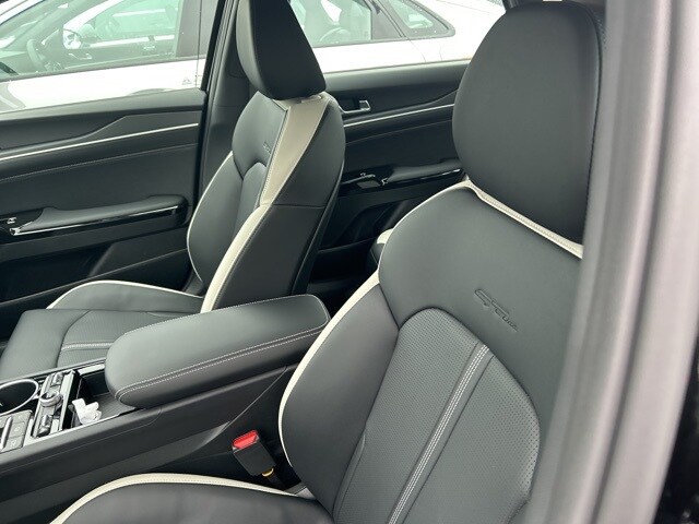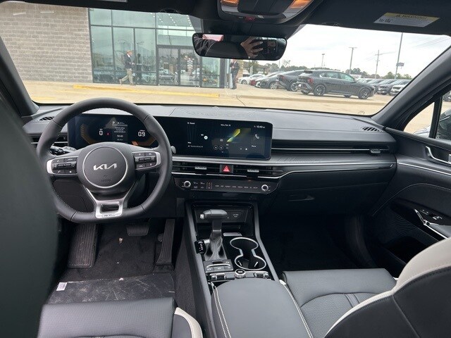 The 2026 Kia K5 comes with the following features; 4-Wheel Disc Brakes, 6 Speakers, ABS brakes, Air Conditioning, Alloy wheels, AM/FM radio: SiriusXM, Auto High-beam Headlights, Automatic temperature control, Brake assist, Bumpers: body-color, Carpeted Floor Mats, Delay-off headlights, Driver door bin, Driver vanity mirror, Dual front impact airbags, Dual front side impact airbags, Electronic Stability Control, Emergency communication system: Kia Connect (includes 1 year free trial), Four wheel independent suspension, Front anti-roll bar, Front Bucket Seats, Front Center Armrest, Front dual zone A/C, Front fog lights, Front reading lights, Fully automatic headlights, Heated door mirrors, Heated Front Bucket Seats, Heated front seats, Illuminated entry, Knee airbag, Leather Shift Knob, Leather steering wheel, Low tire pressure warning, Navigation System, Occupant sensing airbag, Outside temperature display, Overhead airbag, Overhead console, Panic alarm, Passenger door bin, Passenger vanity mirror, Power door mirrors, Power driver seat, Power steering, Power windows, Radio data system, Radio: AM/FM Audio System, Rear anti-roll bar, Rear seat center armrest, Rear side impact airbag, Rear window defroster, Remote keyless entry, Security system, Speed control, Speed-sensing steering, Split folding rear seat, Sport steering wheel, Steering wheel mounted audio controls, Tachometer, Telescoping steering wheel, Tilt steering wheel, Traction control, Trip computer, Turn signal indicator mirrors, Variably intermittent wipers, and Wheels: 18" x 7.5J Gloss Black Machined Finish Alloy.