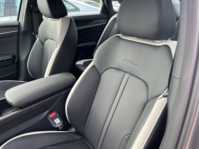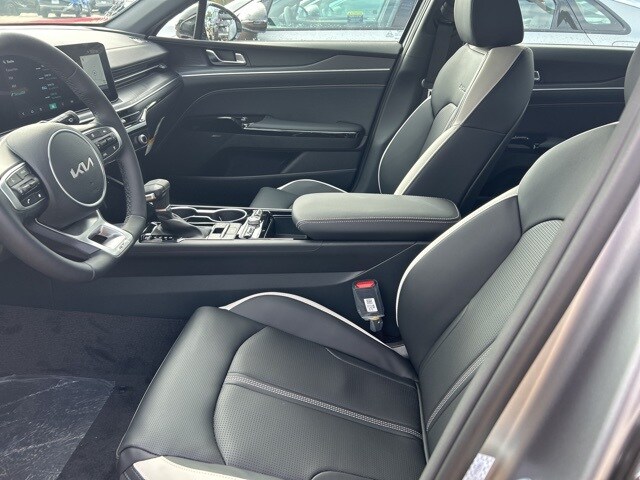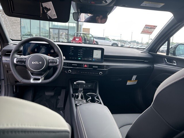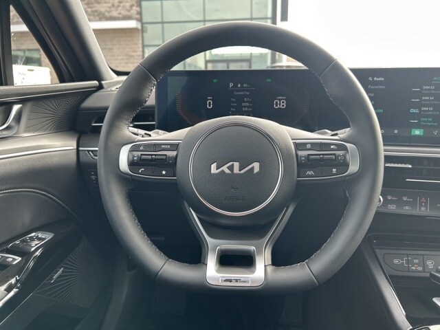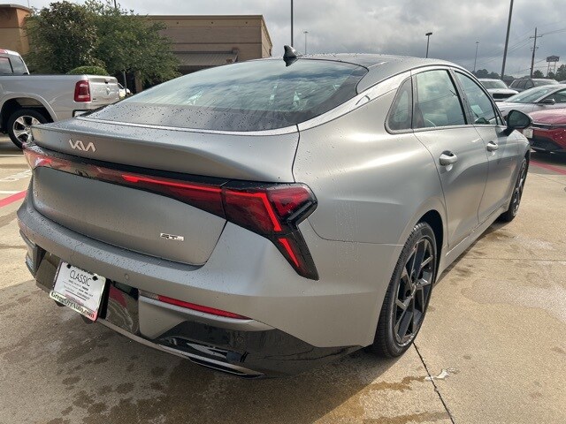 The 2026 Kia K5 comes with the following features; GT-Line Premium Package (Active Sound Design, Bose Premium Audio, LED Interior Lighting, Panoramic Sunroof, and Wheels: 18" x 7.5J Unique Gloss Black Alloy), 4-Wheel Disc Brakes, 6 Speakers, ABS brakes, Air Conditioning, Alloy wheels, AM/FM radio: SiriusXM, Apple CarPlay & Android Auto, Auto High-beam Headlights, Automatic temperature control, Brake assist, Bumpers: body-color, Cargo Net, Carpeted Floor Mats, Delay-off headlights, Driver door bin, Driver vanity mirror, Dual front impact airbags, Dual front side impact airbags, Electronic Stability Control, Emergency communication system: Kia Connect (includes 1 year free trial), Four wheel independent suspension, Front anti-roll bar, Front Bucket Seats, Front Center Armrest, Front dual zone A/C, Front fog lights, Front reading lights, Fully automatic headlights, Heated door mirrors, Heated Front Bucket Seats, Heated front seats, Heated steering wheel, Illuminated entry, Knee airbag, Leather Shift Knob, Leather steering wheel, Low tire pressure warning, Navigation System, Occupant sensing airbag, Outside temperature display, Overhead airbag, Overhead console, Panic alarm, Passenger door bin, Passenger vanity mirror, Power door mirrors, Power driver seat, Power steering, Power windows, Radio data system, Radio: AM/FM Audio System, Rear anti-roll bar, Rear seat center armrest, Rear side impact airbag, Rear window defroster, Remote keyless entry, Security system, Speed control, Speed-sensing steering, Split folding rear seat, Sport steering wheel, Steering wheel mounted audio controls, Tachometer, Telescoping steering wheel, Tilt steering wheel, Traction control, Trip computer, Turn signal indicator mirrors, Variably intermittent wipers, and Wheels: 18" x 7.5J Gloss Black Machined Finish Alloy.