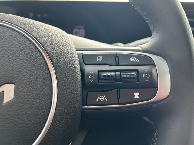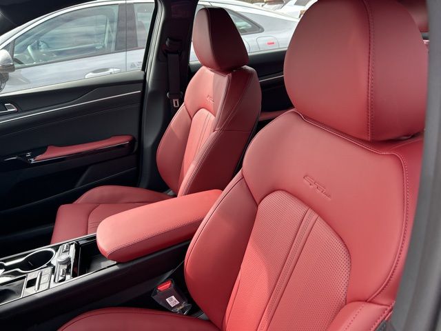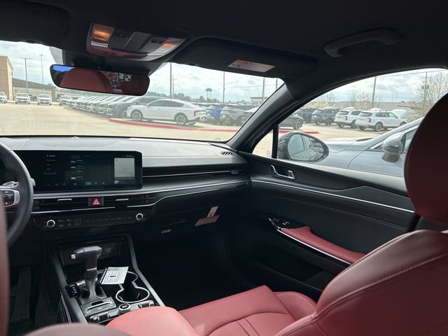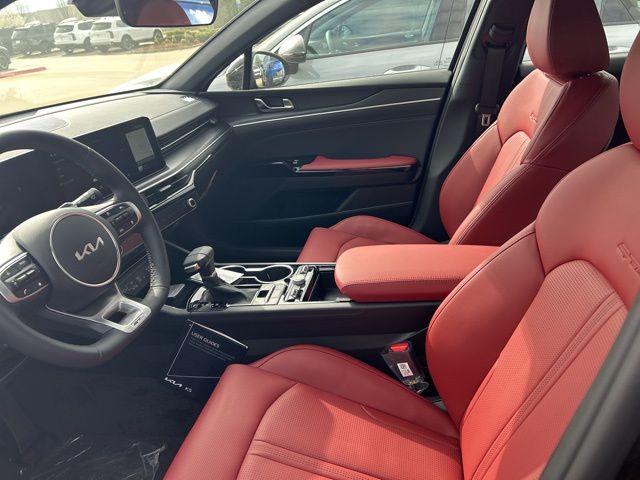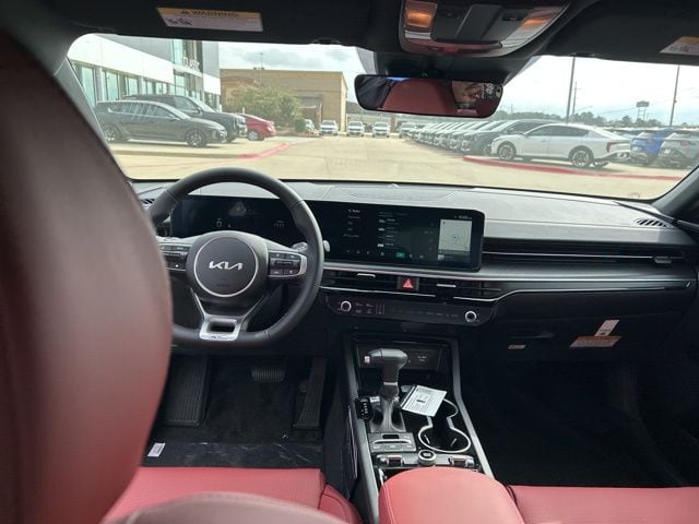 The 2026 Kia K5 comes with the following features; GT-Line Red Interior Package (SynTex Seat Trim), 4-Wheel Disc Brakes, 6 Speakers, ABS brakes, Air Conditioning, Alloy wheels, AM/FM radio: SiriusXM, Auto High-beam Headlights, Automatic temperature control, Brake assist, Bumpers: body-color, Cargo Net, Cargo Tray, Carpeted Floor Mats, Delay-off headlights, Driver door bin, Driver vanity mirror, Dual front impact airbags, Dual front side impact airbags, Electronic Stability Control, Emergency communication system: Kia Connect (includes 1 year free trial), Four wheel independent suspension, Front anti-roll bar, Front Bucket Seats, Front Center Armrest, Front dual zone A/C, Front fog lights, Front reading lights, Fully automatic headlights, Heated door mirrors, Heated Front Bucket Seats, Heated front seats, Illuminated entry, Knee airbag, Leather Shift Knob, Leather steering wheel, Low tire pressure warning, Navigation System, Occupant sensing airbag, Outside temperature display, Overhead airbag, Overhead console, Panic alarm, Passenger door bin, Passenger vanity mirror, Power door mirrors, Power driver seat, Power steering, Power windows, Radio data system, Radio: AM/FM Audio System, Rear anti-roll bar, Rear seat center armrest, Rear side impact airbag, Rear window defroster, Remote keyless entry, Security system, Speed control, Speed-sensing steering, Split folding rear seat, Sport steering wheel, Steering wheel mounted audio controls, Tachometer, Telescoping steering wheel, Tilt steering wheel, Traction control, Trip computer, Turn signal indicator mirrors, Variably intermittent wipers, and Wheels: 18" x 7.5J Gloss Black Machined Finish Alloy.