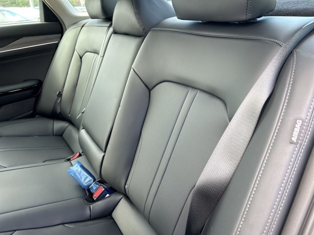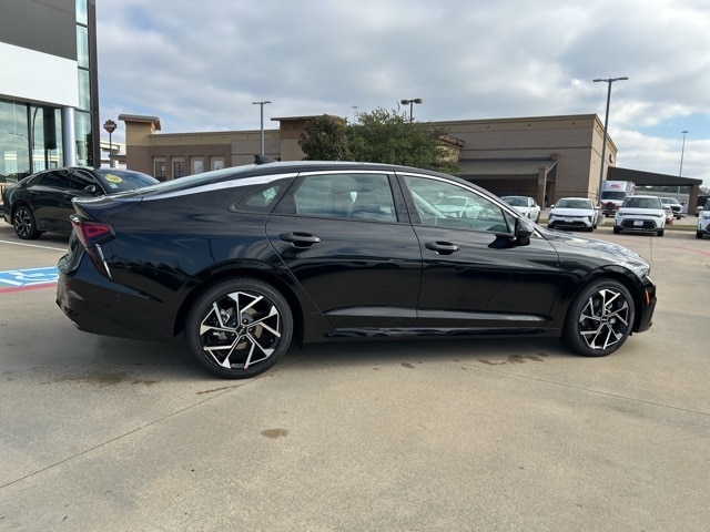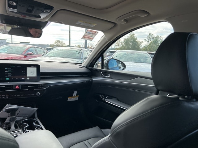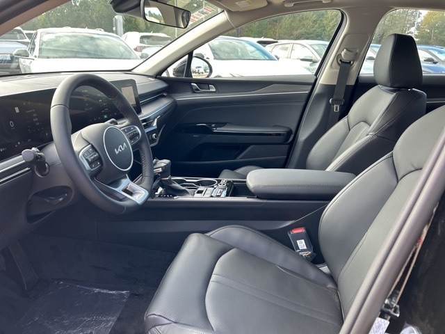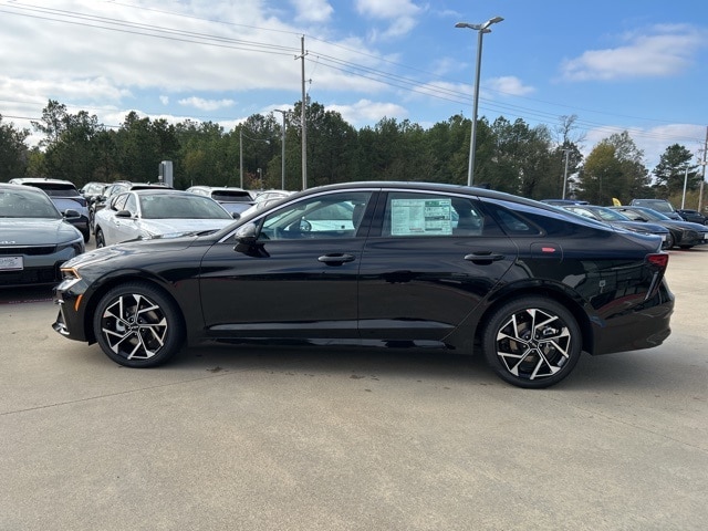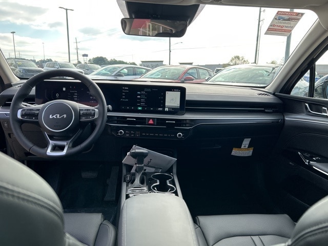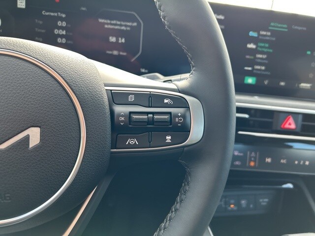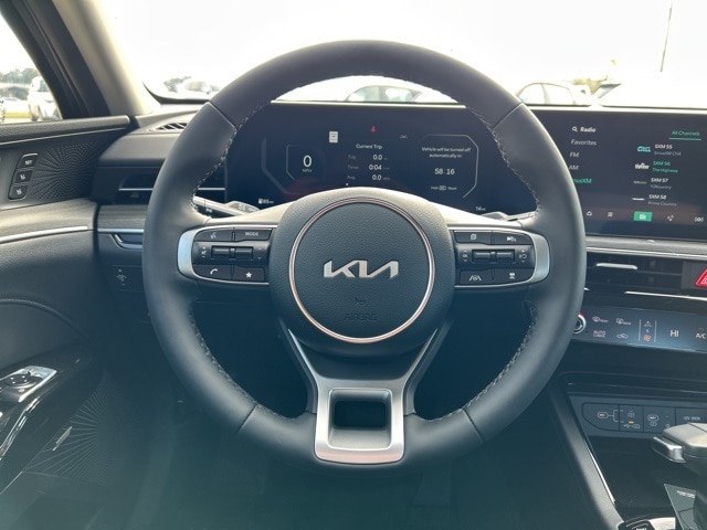 The 2026 Kia K5 comes with the following features; 12 Speakers, 4-Wheel Disc Brakes, ABS brakes, Air Conditioning, Alloy wheels, AM/FM radio: SiriusXM, Auto High-beam Headlights, Automatic temperature control, Brake assist, Bumpers: body-color, Carpeted Floor Mats, Delay-off headlights, Driver door bin, Driver vanity mirror, Dual front impact airbags, Dual front side impact airbags, Electronic Stability Control, Emergency communication system: Kia Connect (includes 1 year free trial), Four wheel independent suspension, Front anti-roll bar, Front Bucket Seats, Front Center Armrest, Front dual zone A/C, Front reading lights, Fully automatic headlights, Heated and Ventilated Front Bucket Seats, Heated door mirrors, Heated front seats, Heated steering wheel, Illuminated entry, Knee airbag, Leather Shift Knob, Leather steering wheel, Low tire pressure warning, Memory seat, Navigation System, Occupant sensing airbag, Outside temperature display, Overhead airbag, Overhead console, Panic alarm, Passenger door bin, Passenger vanity mirror, Power door mirrors, Power driver seat, Power moonroof, Power passenger seat, Power steering, Power windows, Radio data system, Radio: AM/FM Audio System, Rear anti-roll bar, Rear reading lights, Rear seat center armrest, Rear side impact airbag, Rear window defroster, Remote keyless entry, Security system, Speed control, Speed-sensing steering, Split folding rear seat, Steering wheel mounted audio controls, SynTex Seat Trim, Tachometer, Telescoping steering wheel, Tilt steering wheel, Traction control, Trip computer, Turn signal indicator mirrors, Variably intermittent wipers, Ventilated front seats, and Wheels: 18" x 7.5J Gloss Black Machined Finish Alloy.