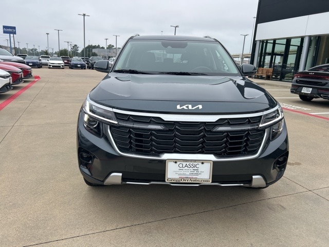 The 2026 Kia Seltos comes with the following features; 4-Wheel Disc Brakes, 6 Speakers, ABS brakes, Air Conditioning, Alloy wheels, AM/FM radio: SiriusXM, Apple CarPlay & Android Auto, Auto High-beam Headlights, Automatic temperature control, Brake assist, Bumpers: body-color, Cargo Net (Floor), Carpet Floor Mats, Cloth & Artificial Leather Seat Trim, Delay-off headlights, Driver door bin, Driver vanity mirror, Dual front impact airbags, Dual front side impact airbags, Electronic Stability Control, Emergency communication system: 911 Connect, Exterior Parking Camera Rear, Front anti-roll bar, Front Bucket Seats, Front Center Armrest, Front fog lights, Front reading lights, Front wheel independent suspension, Fully automatic headlights, Heated door mirrors, Illuminated entry, Leather Shift Knob, Leather steering wheel, Low tire pressure warning, Navigation System, Occupant sensing airbag, Outside temperature display, Overhead airbag, Overhead console, Panic alarm, Passenger door bin, Passenger vanity mirror, Power door mirrors, Power steering, Power windows, Radio: AM/FM/HD/Satellite Display System w/Navigation, Rear seat center armrest, Rear window defroster, Rear window wiper, Remote keyless entry, Security system, Speed control, Speed-sensing steering, Split folding rear seat, Spoiler, Steering wheel mounted audio controls, Tachometer, Telescoping steering wheel, Tilt steering wheel, Traction control, Trip computer, Turn signal indicator mirrors, Variably intermittent wipers, and Wheels: 17" Alloy w/Machined Finished.