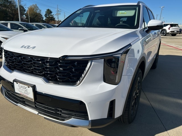 The 2026 Kia Sorento comes with the following features; AWD, 3rd row seats: split-bench, 4-Wheel Disc Brakes, 6 Speakers, ABS brakes, Air Conditioning, Alloy wheels, AM/FM radio: SiriusXM, Apple CarPlay & Android Auto, Auto High-beam Headlights, Automatic temperature control, Brake assist, Bumpers: body-color, Cargo Cover, Cargo Tray, Carpeted Floor Mats, Delay-off headlights, Driver door bin, Driver vanity mirror, Dual front impact airbags, Dual front side impact airbags, Electronic Stability Control, Emergency communication system: 911 Connect, Exterior Parking Camera Rear, Four wheel independent suspension, Front anti-roll bar, Front Bucket Seats, Front Center Armrest, Front dual zone A/C, Front reading lights, Fully automatic headlights, Heated door mirrors, Heated Front Bucket Seats, Heated front seats, Illuminated entry, Knee airbag, Leather Shift Knob, Leather steering wheel, Low tire pressure warning, Occupant sensing airbag, Outside temperature display, Overhead airbag, Overhead console, Panic alarm, Passenger door bin, Passenger vanity mirror, Power door mirrors, Power driver seat, Power steering, Power windows, Radio data system, Radio: AM/FM Standard Sound System, Rear anti-roll bar, Rear reading lights, Rear seat center armrest, Rear side impact airbag, Rear window defroster, Rear window wiper, Remote keyless entry, Security system, Speed control, Speed-sensing steering, Split folding rear seat, Spoiler, Steering wheel mounted audio controls, SynTex Artificial Leather Seat Trim, Tachometer, Telescoping steering wheel, Tilt steering wheel, Traction control, Trip computer, Turn signal indicator mirrors, Variably intermittent wipers, and Wheels: 18" Gloss Black Alloy. AWD.
