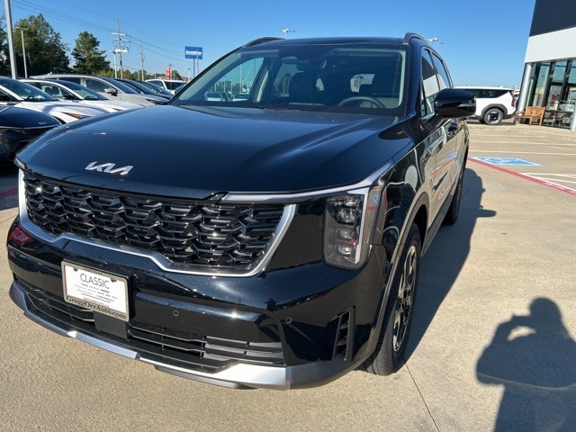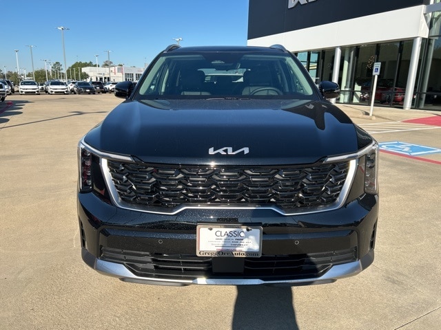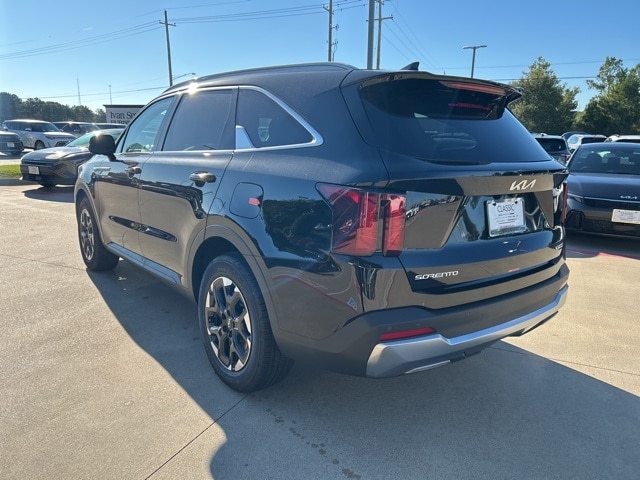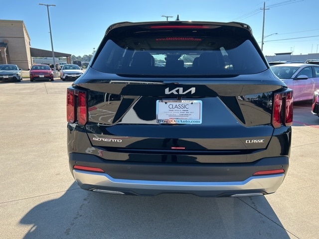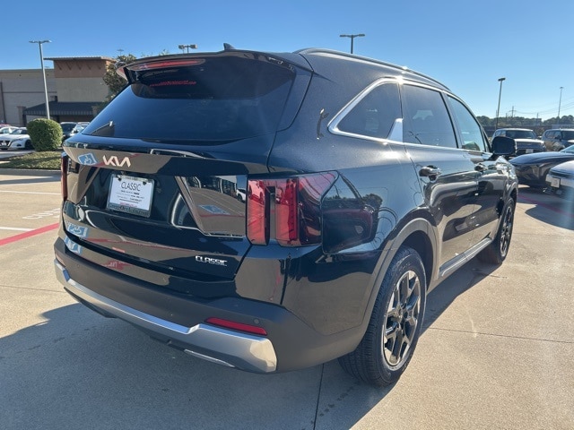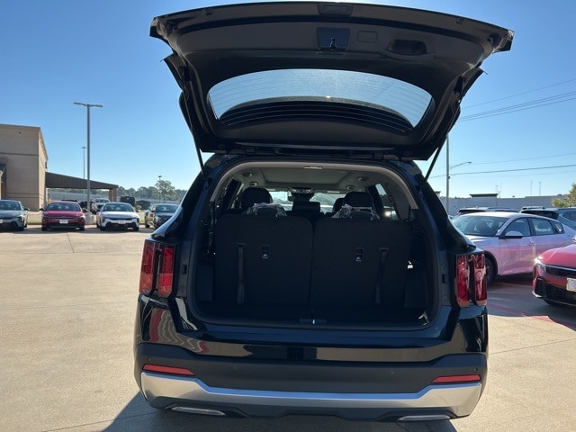 The 2026 Kia Sorento comes with the following features; S Panoramic Sunroof Package (Full-Length One-Touch Panoroof w/Sliding Sunshade and LED Interior Lighting), 3rd row seats: split-bench, 4-Wheel Disc Brakes, 6 Speakers, ABS brakes, Air Conditioning, Alloy wheels, AM/FM radio: SiriusXM, Apple CarPlay & Android Auto, Auto High-beam Headlights, Automatic temperature control, Brake assist, Bumpers: body-color, Carpeted Floor Mats, Delay-off headlights, Driver door bin, Driver vanity mirror, Dual front impact airbags, Dual front side impact airbags, Electronic Stability Control, Emergency communication system: 911 Connect, Exterior Parking Camera Rear, Four wheel independent suspension, Front anti-roll bar, Front Bucket Seats, Front Center Armrest, Front dual zone A/C, Front reading lights, Fully automatic headlights, Heated door mirrors, Heated Front Bucket Seats, Heated front seats, Illuminated entry, Knee airbag, Leather Shift Knob, Leather steering wheel, Low tire pressure warning, Occupant sensing airbag, Outside temperature display, Overhead airbag, Overhead console, Panic alarm, Passenger door bin, Passenger vanity mirror, Power door mirrors, Power driver seat, Power steering, Power windows, Radio data system, Radio: AM/FM Standard Sound System, Rear anti-roll bar, Rear reading lights, Rear seat center armrest, Rear side impact airbag, Rear window defroster, Rear window wiper, Remote keyless entry, Security system, Speed control, Speed-sensing steering, Split folding rear seat, Spoiler, Steering wheel mounted audio controls, SynTex Artificial Leather Seat Trim, Tachometer, Telescoping steering wheel, Tilt steering wheel, Traction control, Trip computer, Turn signal indicator mirrors, Variably intermittent wipers, and Wheels: 18" Gloss Black Alloy.