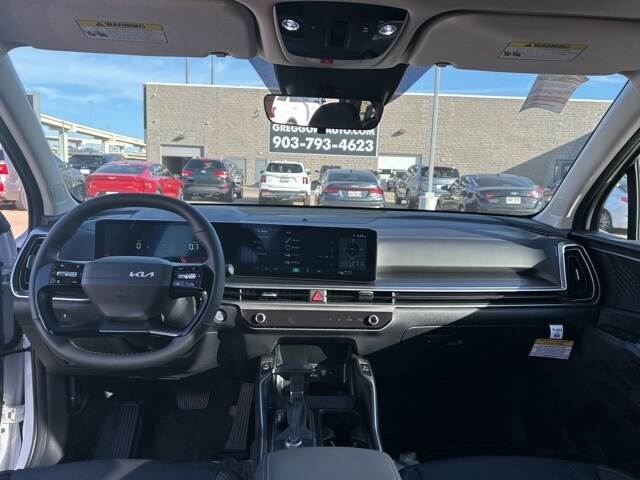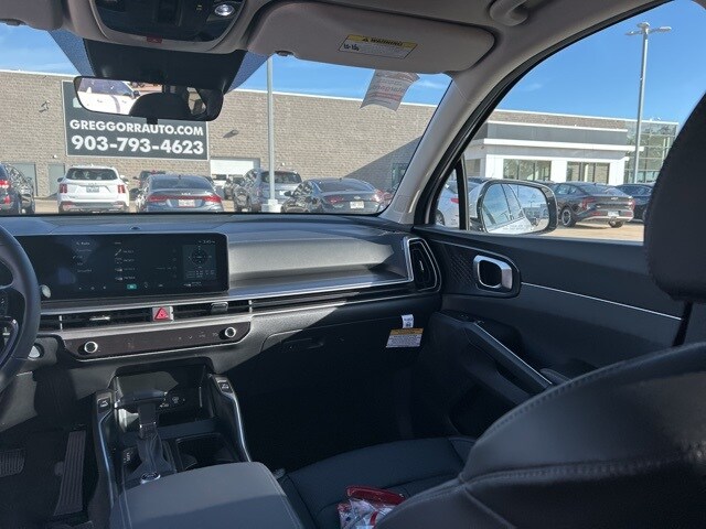 The 2026 Kia Sorento comes with the following features; S Panoramic Sunroof Package (Full-Length One-Touch Panoroof w/Sliding Sunshade and LED Interior Lighting), 3rd row seats: split-bench, 4-Wheel Disc Brakes, 6 Speakers, ABS brakes, Air Conditioning, Alloy wheels, AM/FM radio: SiriusXM, Apple CarPlay & Android Auto, Auto High-beam Headlights, Automatic temperature control, Brake assist, Bumpers: body-color, Cargo Net, Cargo Tray, Carpeted Floor Mats, Delay-off headlights, Driver door bin, Driver vanity mirror, Dual front impact airbags, Dual front side impact airbags, Electronic Stability Control, Emergency communication system: 911 Connect, Exterior Parking Camera Rear, Four wheel independent suspension, Front anti-roll bar, Front Bucket Seats, Front Center Armrest, Front dual zone A/C, Front reading lights, Fully automatic headlights, Heated door mirrors, Heated Front Bucket Seats, Heated front seats, Illuminated entry, Knee airbag, Leather Shift Knob, Leather steering wheel, Low tire pressure warning, Occupant sensing airbag, Outside temperature display, Overhead airbag, Overhead console, Panic alarm, Passenger door bin, Passenger vanity mirror, Power door mirrors, Power driver seat, Power steering, Power windows, Radio data system, Radio: AM/FM Standard Sound System, Rear anti-roll bar, Rear reading lights, Rear seat center armrest, Rear side impact airbag, Rear window defroster, Rear window wiper, Remote keyless entry, Security system, Speed control, Speed-sensing steering, Split folding rear seat, Spoiler, Steering wheel mounted audio controls, SynTex Artificial Leather Seat Trim, Tachometer, Telescoping steering wheel, Tilt steering wheel, Traction control, Trip computer, Turn signal indicator mirrors, Variably intermittent wipers, and Wheels: 18" Gloss Black Alloy.