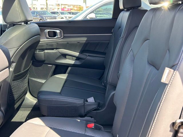 The 2026 Kia Sorento comes with the following features; AWD, 12 Speakers, 3rd row seats: split-bench, 4-Wheel Disc Brakes, ABS brakes, Air Conditioning, Alloy wheels, AM/FM radio: SiriusXM, Apple CarPlay & Android Auto, Auto High-beam Headlights, Auto-dimming Rear-View mirror, Automatic temperature control, Brake assist, Bumpers: body-color, Carpeted Floor Mats, Delay-off headlights, Driver door bin, Driver vanity mirror, Dual front impact airbags, Dual front side impact airbags, Electronic Stability Control, Emergency communication system: 911 Connect, Exterior Parking Camera Rear, Four wheel independent suspension, Front anti-roll bar, Front Bucket Seats, Front Center Armrest, Front dual zone A/C, Front fog lights, Front reading lights, Fully automatic headlights, Garage door transmitter: HomeLink, Heated and Ventilated Front Bucket Seats, Heated door mirrors, Heated front seats, Heated steering wheel, Illuminated entry, Knee airbag, Leather Shift Knob, Leather steering wheel, Low tire pressure warning, Navigation System, Occupant sensing airbag, Outside temperature display, Overhead airbag, Overhead console, Panic alarm, Passenger door bin, Passenger vanity mirror, Power door mirrors, Power driver seat, Power Liftgate, Power moonroof, Power passenger seat, Power steering, Power windows, Radio data system, Radio: AM/FM Bose Premium Audio System, Rain sensing wipers, Rear anti-roll bar, Rear reading lights, Rear side impact airbag, Rear window defroster, Rear window wiper, Remote keyless entry, Security system, Speed control, Speed-sensing steering, Split folding rear seat, Spoiler, Steering wheel mounted audio controls, SynTex Artificial Leather Seat Trim, Tachometer, Telescoping steering wheel, Tilt steering wheel, Traction control, Trip computer, Turn signal indicator mirrors, Variably intermittent wipers, Ventilated front seats, and Wheels: 20" x 8.5J Gloss Black X-Line Alloy. AWD.