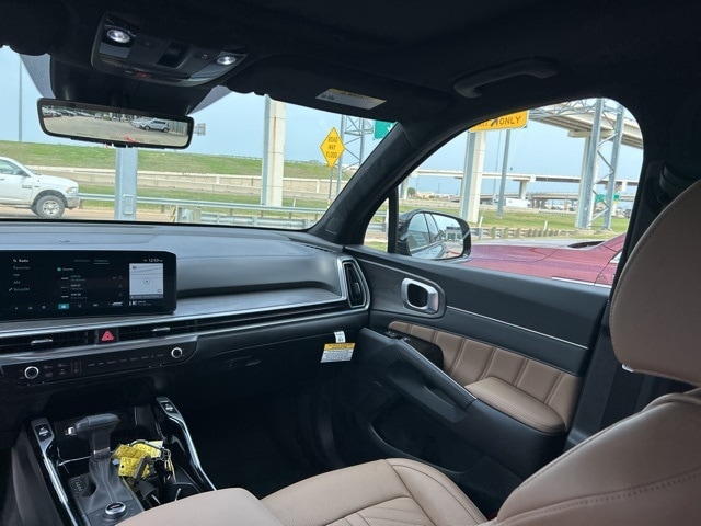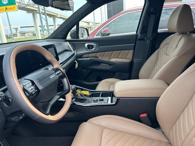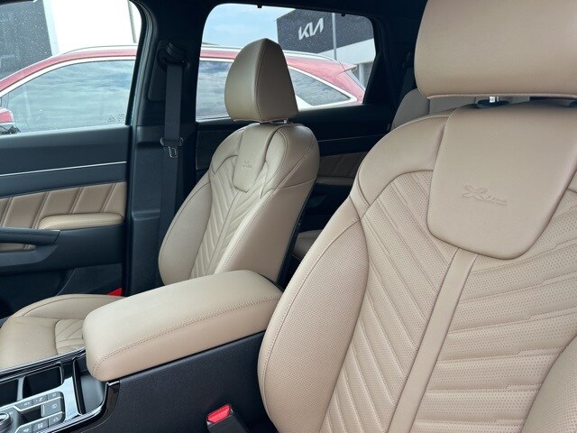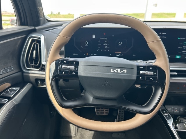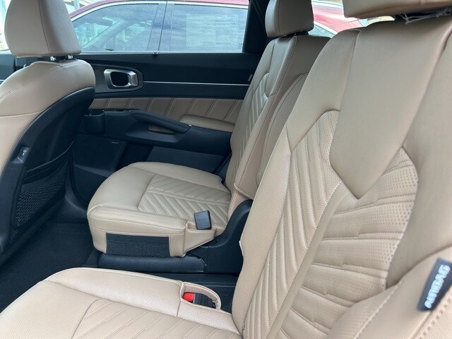 The 2026 Kia Sorento comes with the following features; Olive Brown Leather Package, AWD, 12 Speakers, 3rd row seats: split-bench, 4-Wheel Disc Brakes, ABS brakes, Air Conditioning, Alloy wheels, AM/FM radio: SiriusXM, Apple CarPlay & Android Auto, Auto High-beam Headlights, Auto-dimming Rear-View mirror, Automatic temperature control, Brake assist, Bumpers: body-color, Carpeted Floor Mats, Delay-off headlights, Driver door bin, Driver vanity mirror, Dual front impact airbags, Dual front side impact airbags, Electronic Stability Control, Emergency communication system: 911 Connect, Exterior Parking Camera Rear, Four wheel independent suspension, Front anti-roll bar, Front Bucket Seats, Front Center Armrest, Front dual zone A/C, Front fog lights, Front reading lights, Fully automatic headlights, Garage door transmitter: HomeLink, Heated & Ventilated Front Bucket Seats, Heated door mirrors, Heated front seats, Heated rear seats, Heated steering wheel, Illuminated entry, Knee airbag, Leather Shift Knob, Leather steering wheel, Low tire pressure warning, Memory seat, Navigation System, Occupant sensing airbag, Outside temperature display, Overhead airbag, Overhead console, Panic alarm, Passenger door bin, Passenger vanity mirror, Perforated Genuine Leather Seat Trim, Power door mirrors, Power driver seat, Power Liftgate, Power moonroof, Power passenger seat, Power steering, Power windows, Radio data system, Radio: AM/FM Bose Premium Audio System, Rain sensing wipers, Rear anti-roll bar, Rear reading lights, Rear side impact airbag, Rear window defroster, Rear window wiper, Remote keyless entry, Security system, Speed control, Speed-sensing steering, Split folding rear seat, Spoiler, Steering wheel mounted audio controls, Tachometer, Telescoping steering wheel, Tilt steering wheel, Traction control, Trip computer, Turn signal indicator mirrors, Variably intermittent wipers, Ventilated front seats, and Wheels: 20" Gloss Black X-Line Alloy. AWD.