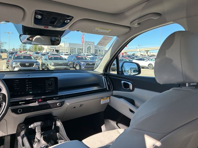 The 2026 Kia Sorento comes with the following features; S Panoramic Sunroof Package (Full-Length One-Touch Panoroof with Sliding Sunshade and LED Interior Lighting), 3rd row seats: split-bench, 4-Wheel Disc Brakes, 6 Speakers, ABS brakes, Air Conditioning, Alloy wheels, AM/FM radio: SiriusXM, Apple CarPlay & Android Auto, Auto High-beam Headlights, Automatic temperature control, Brake assist, Bumpers: body-color, Carpeted Floor Mats, Delay-off headlights, Driver door bin, Driver vanity mirror, Dual front impact airbags, Dual front side impact airbags, Electronic Stability Control, Emergency communication system: 911 Connect, Exterior Parking Camera Rear, Four wheel independent suspension, Front anti-roll bar, Front Bucket Seats, Front Center Armrest, Front dual zone A/C, Front reading lights, Fully automatic headlights, Heated door mirrors, Heated Front Bucket Seats, Heated front seats, Illuminated entry, Knee airbag, Leather Shift Knob, Leather steering wheel, Low tire pressure warning, Occupant sensing airbag, Outside temperature display, Overhead airbag, Overhead console, Panic alarm, Passenger door bin, Passenger vanity mirror, Power door mirrors, Power driver seat, Power steering, Power windows, Radio data system, Radio: AM/FM Standard Sound System, Rear anti-roll bar, Rear reading lights, Rear seat center armrest, Rear side impact airbag, Rear window defroster, Rear window wiper, Remote keyless entry, Security system, Speed control, Speed-sensing steering, Split folding rear seat, Spoiler, Steering wheel mounted audio controls, SynTex Artificial Leather Seat Trim, Tachometer, Telescoping steering wheel, Tilt steering wheel, Traction control, Trip computer, Turn signal indicator mirrors, Variably intermittent wipers, and Wheels: 18" Gloss Black Alloy.