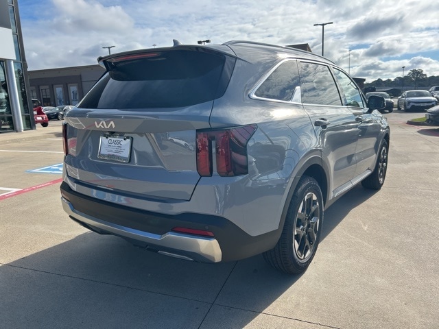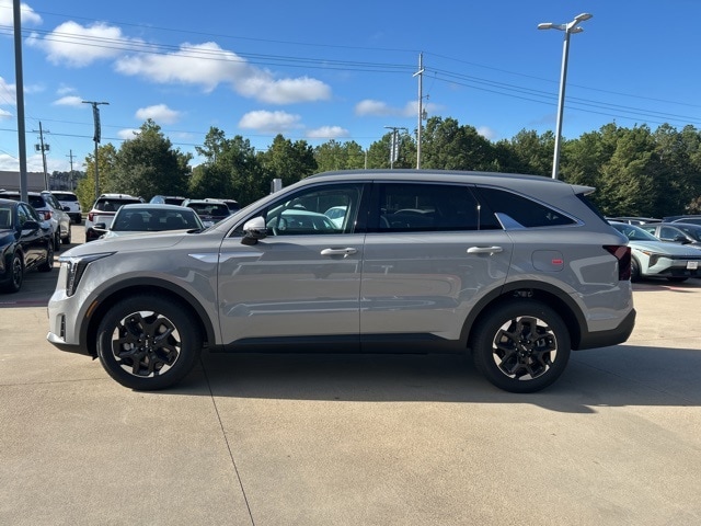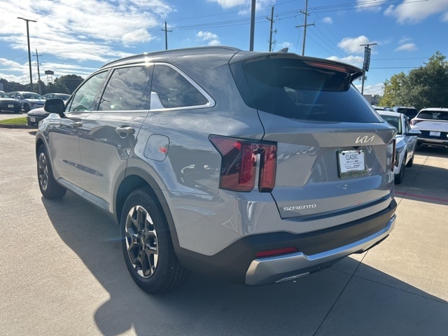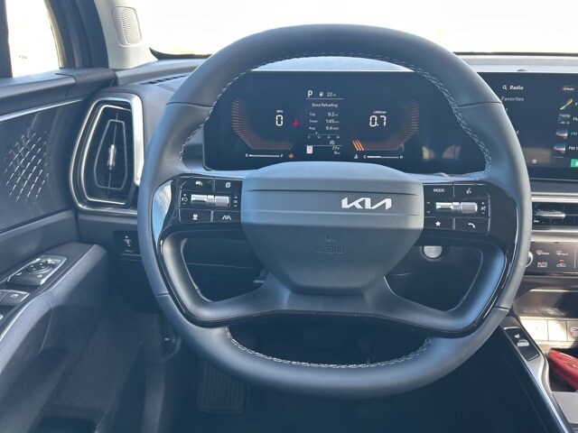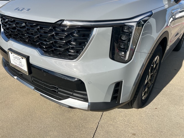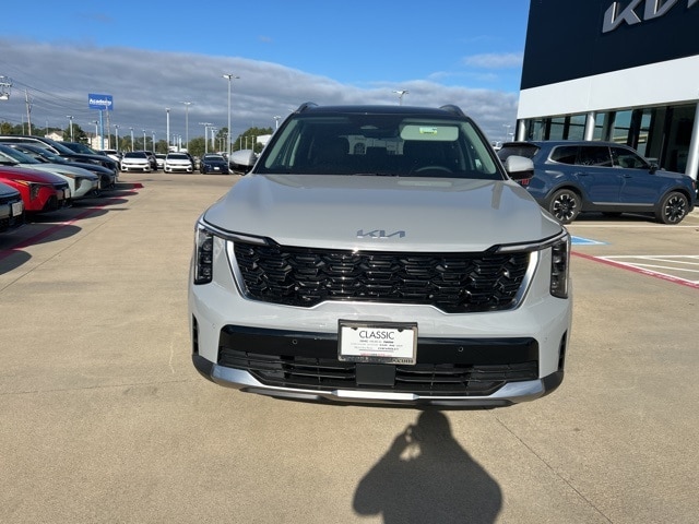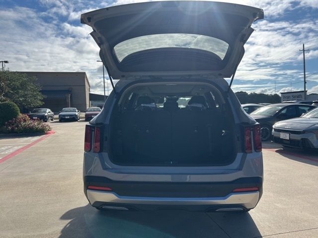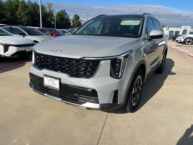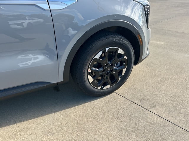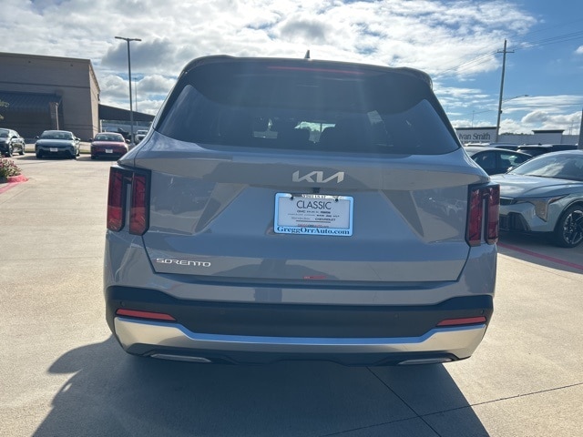 The 2026 Kia Sorento comes with the following features; S Panoramic Sunroof Package (Full-Length One-Touch Panoroof w/Sliding Sunshade and LED Interior Lighting), 3rd row seats: split-bench, 4-Wheel Disc Brakes, 6 Speakers, ABS brakes, Air Conditioning, Alloy wheels, AM/FM radio: SiriusXM, Apple CarPlay & Android Auto, Auto High-beam Headlights, Automatic temperature control, Brake assist, Bumpers: body-color, Carpeted Floor Mats, Delay-off headlights, Driver door bin, Driver vanity mirror, Dual front impact airbags, Dual front side impact airbags, Electronic Stability Control, Emergency communication system: 911 Connect, Exterior Parking Camera Rear, Four wheel independent suspension, Front anti-roll bar, Front Bucket Seats, Front Center Armrest, Front dual zone A/C, Front reading lights, Fully automatic headlights, Heated door mirrors, Heated Front Bucket Seats, Heated front seats, Illuminated entry, Knee airbag, Leather Shift Knob, Leather steering wheel, Low tire pressure warning, Occupant sensing airbag, Outside temperature display, Overhead airbag, Overhead console, Panic alarm, Passenger door bin, Passenger vanity mirror, Power door mirrors, Power driver seat, Power steering, Power windows, Radio data system, Radio: AM/FM Standard Sound System, Rear anti-roll bar, Rear reading lights, Rear seat center armrest, Rear side impact airbag, Rear window defroster, Rear window wiper, Remote keyless entry, Security system, Speed control, Speed-sensing steering, Split folding rear seat, Spoiler, Steering wheel mounted audio controls, SynTex Artificial Leather Seat Trim, Tachometer, Telescoping steering wheel, Tilt steering wheel, Traction control, Trip computer, Turn signal indicator mirrors, Variably intermittent wipers, and Wheels: 18" Gloss Black Alloy.