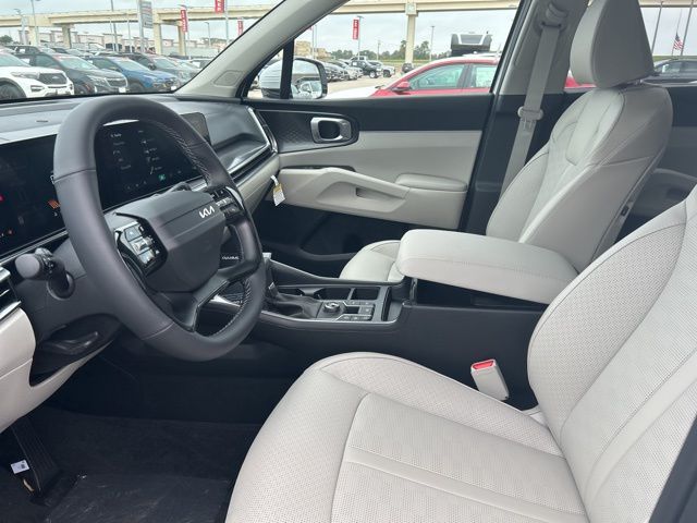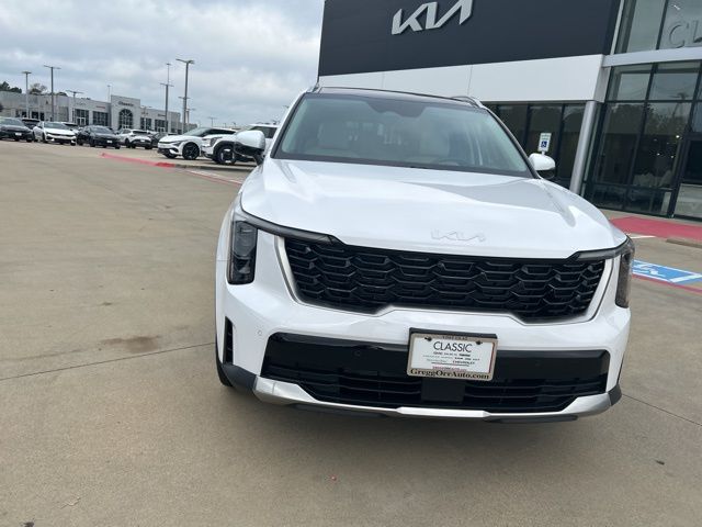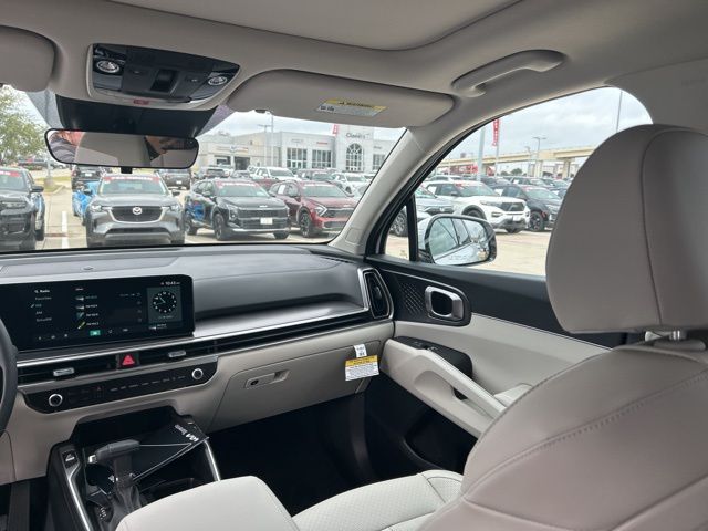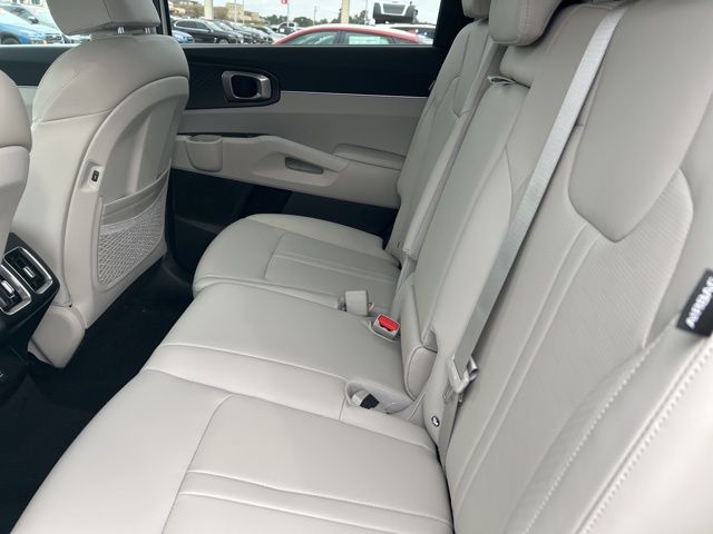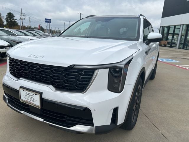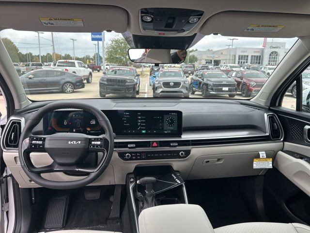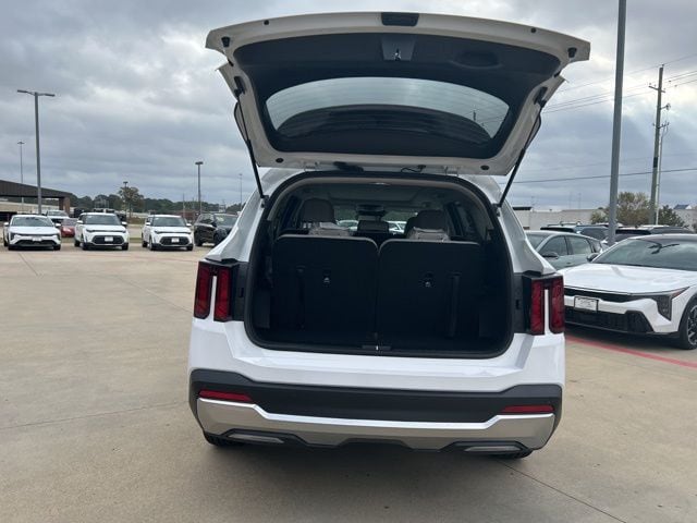 The 2026 Kia Sorento comes with the following features; S Panoramic Sunroof Package (Full-Length One-Touch Panoroof with Sliding Sunshade and LED Interior Lighting), 3rd row seats: split-bench, 4-Wheel Disc Brakes, 6 Speakers, ABS brakes, Air Conditioning, Alloy wheels, AM/FM radio: SiriusXM, Apple CarPlay & Android Auto, Auto High-beam Headlights, Automatic temperature control, Brake assist, Bumpers: body-color, Carpeted Floor Mats, Delay-off headlights, Driver door bin, Driver vanity mirror, Dual front impact airbags, Dual front side impact airbags, Electronic Stability Control, Emergency communication system: 911 Connect, Exterior Parking Camera Rear, Four wheel independent suspension, Front anti-roll bar, Front Bucket Seats, Front Center Armrest, Front dual zone A/C, Front reading lights, Fully automatic headlights, Heated door mirrors, Heated Front Bucket Seats, Heated front seats, Illuminated entry, Knee airbag, Leather Shift Knob, Leather steering wheel, Low tire pressure warning, Occupant sensing airbag, Outside temperature display, Overhead airbag, Overhead console, Panic alarm, Passenger door bin, Passenger vanity mirror, Power door mirrors, Power driver seat, Power steering, Power windows, Radio data system, Radio: AM/FM Standard Sound System, Rear anti-roll bar, Rear reading lights, Rear seat center armrest, Rear side impact airbag, Rear window defroster, Rear window wiper, Remote keyless entry, Security system, Speed control, Speed-sensing steering, Split folding rear seat, Spoiler, Steering wheel mounted audio controls, SynTex Artificial Leather Seat Trim, Tachometer, Telescoping steering wheel, Tilt steering wheel, Traction control, Trip computer, Turn signal indicator mirrors, Variably intermittent wipers, and Wheels: 18" Gloss Black Alloy.